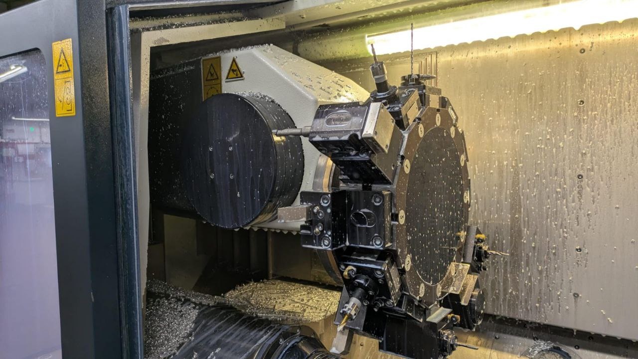 1x Parting Tool Holder Universal rotation direction External coolant supply -Working hours: 165977 h General Specifications Travel Paths: X1, X3: 180 mm X2: 180 mm Y1, Y3: ±45 mm Z1, Z3: 704 mm Z2: 620 mm E2: 720 mm Rapid Traverses: X, Y, Z at 30 m/min Acceleration: 0.5 g Spindle 1 Maximum Speed: 5000 rpm Spindle Nose: A6 type Spindle Bore: Ø65 mm Chuck Diameter: 210 mm Maximum Drive Power: 24 kW / 18 kW (S3 40% / S1) Maximum Torque: 151 Nm / 115 Nm (S3 40% / S1) Additional Details Coolant Tank Volume: ~200 liters Hydraulic Tank Volume: ~120 liters Central Lubrication Unit Volume: ~2 liters
