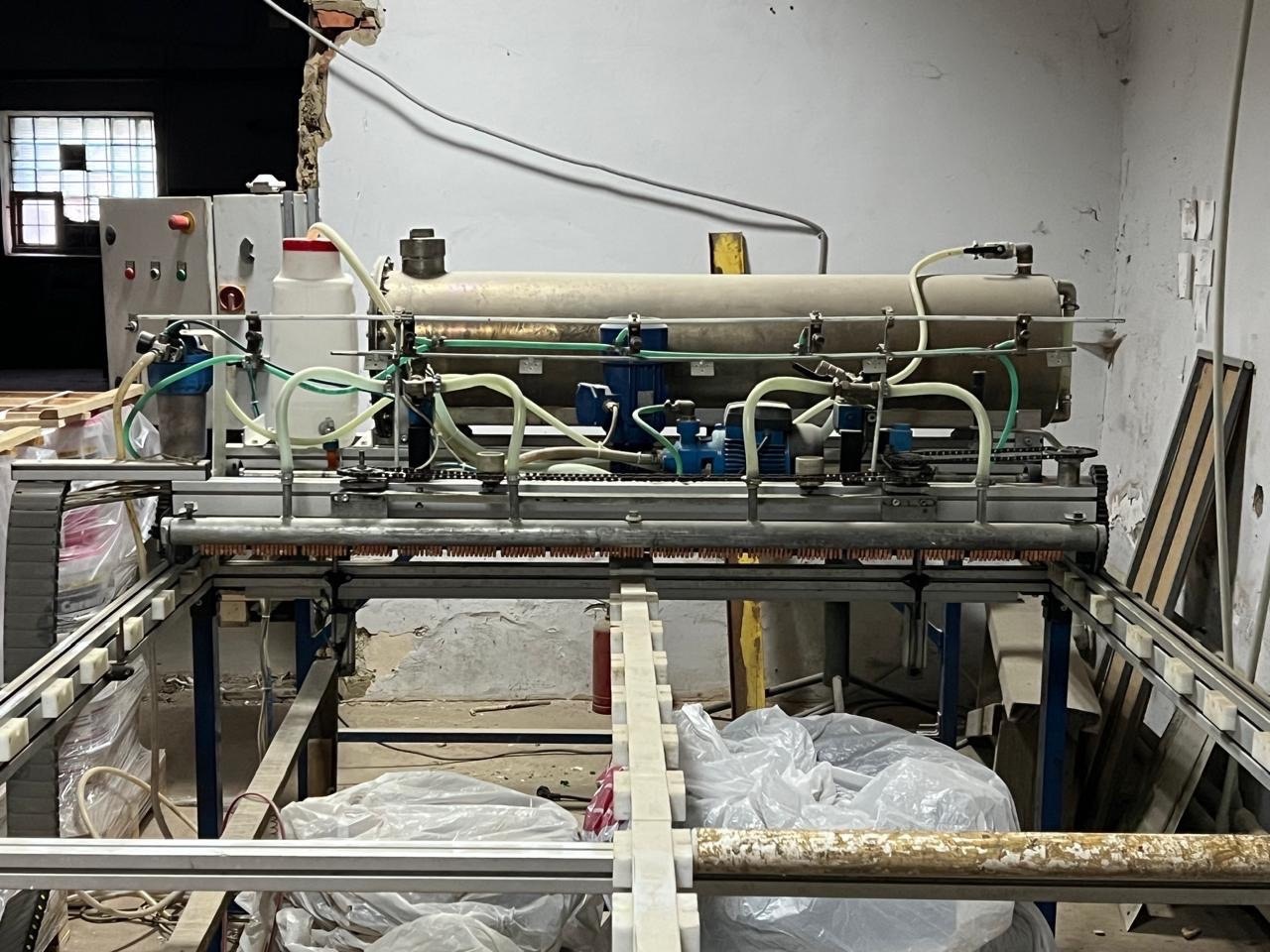 Линия предназначена для автоматического нанесения клея на ПВХ листы и листы ОСБ, для изготовления Оконных ПВХ панелей или изготовления СИП панелей. Оборудование высокопроизводительное изготовлено профильной компанией, специализирующейся на выпуске подобного типа оборудования в Польше BUDIMPEX. Линия не смотря на год изготовления и хорошем состоянии.