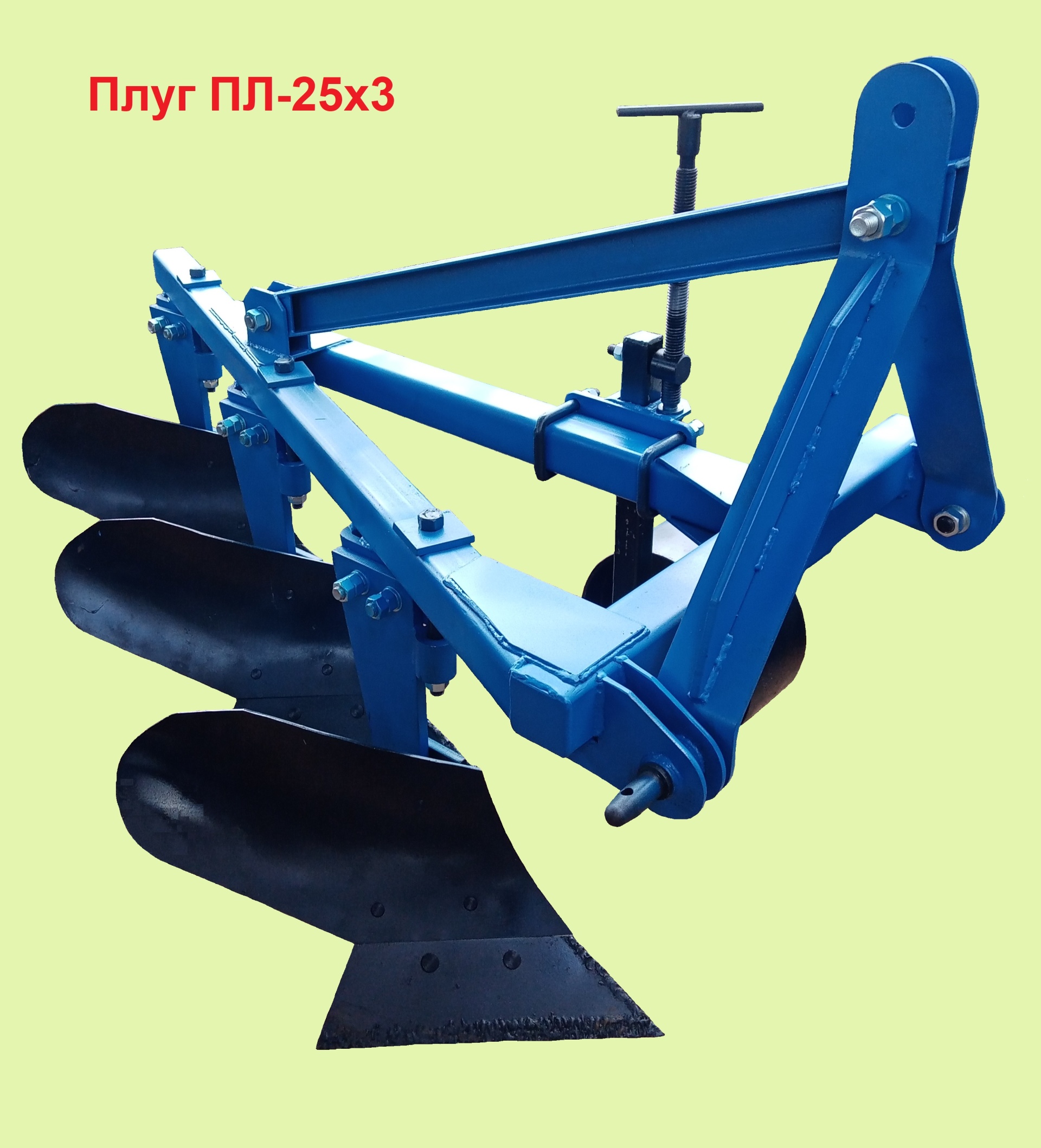 -трехкорпусный плуг модели ПЛ-25х3 для тракторов мощностью 50-90 л.с. – МТЗ-421, МТЗ-80, МТЗ-82 и аналогов. Подходит под все марки импортных тракторов.