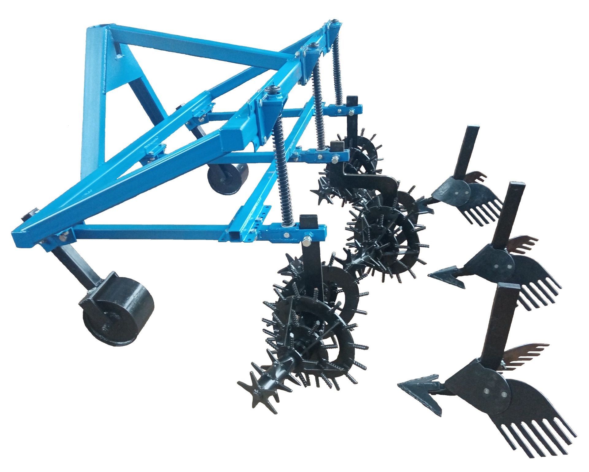 Универсальный и надежный 3-х корпусной Окучник ОКН-2х0,7, с регулировкой ширины междурядий 65 см, 70 см, 75 см, с пружинной защитой. Вес 150 кг. Навеска универсальная - на три точки и на треугольник. Усиленные стойки сечением 20х60 мм. Вместо окучников можно ставить роторные рыхлители (Ежи). В наличии и под заказ, отправляем транспортными компаниями.