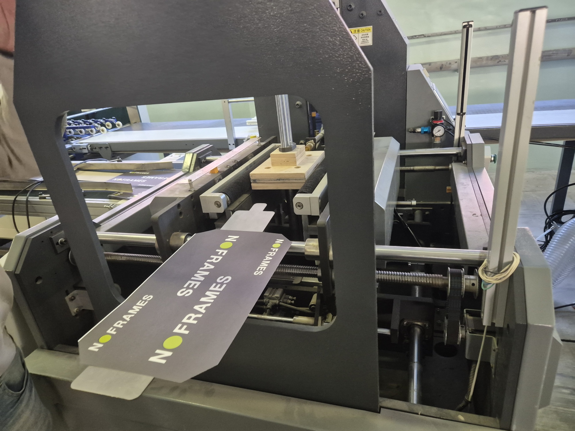 Полуавтомат для оклейки лайнером коробок крышка-дно из переплетного картона.