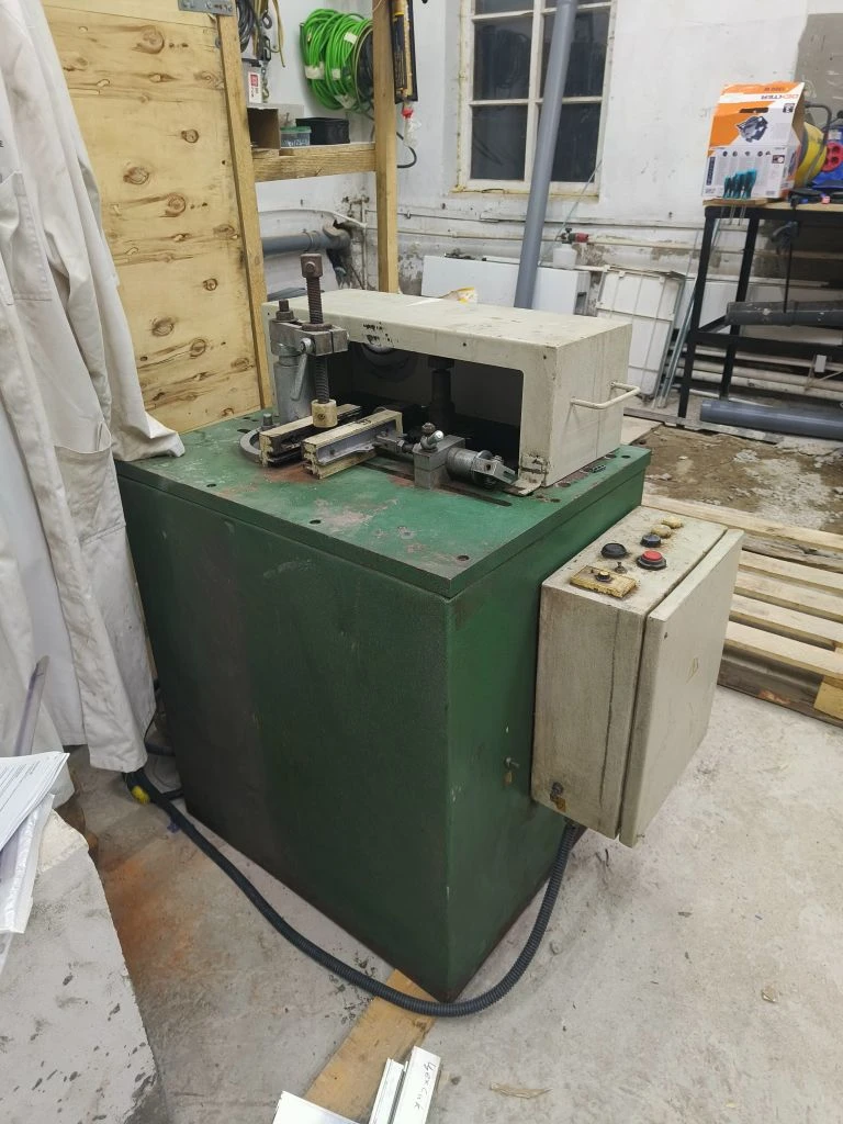 Предназначен для обработки торцов профилей из мягких материалов - алюминия, пластика, дерева. Обработка производится посредством закрепления заготовки в прижимах станка и фрезерованием фрезой, установленной на подвижной каретке.