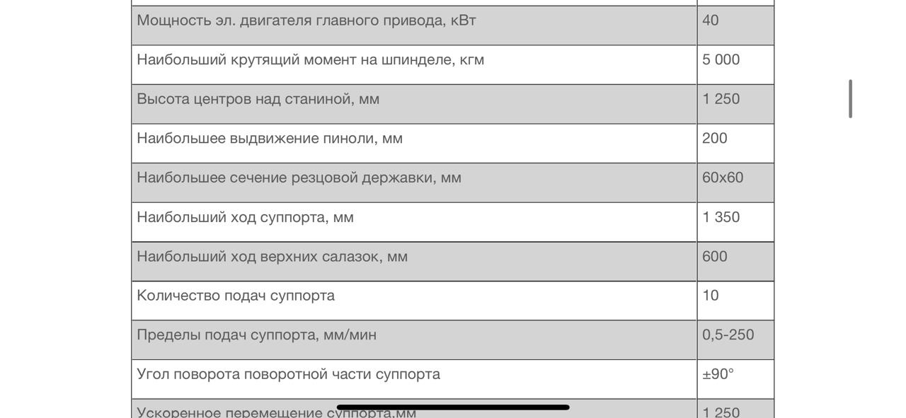 | Ускоренное перемещение суппорта,мм | 1 250 |