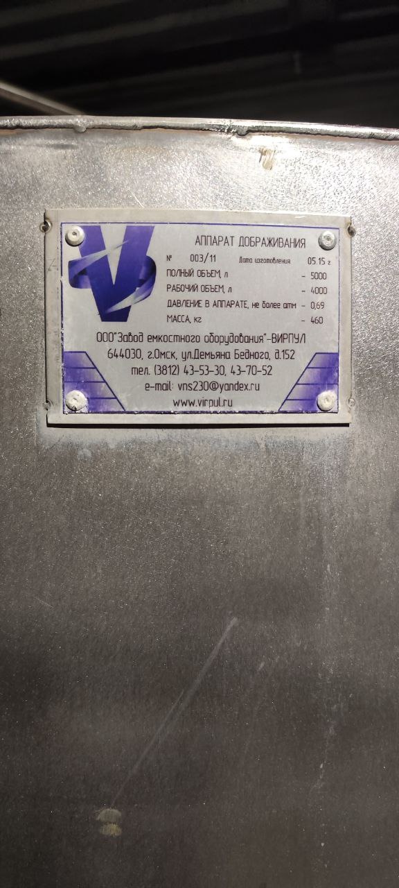 Продам аппарат дображивания объёмом 5000 литров, предназначенный для выдержки, дображивания и созревания напитков после основного брожения.