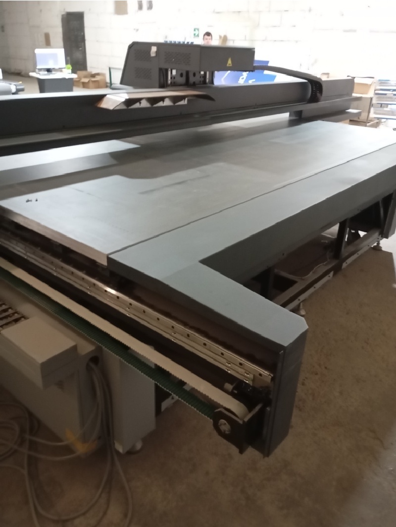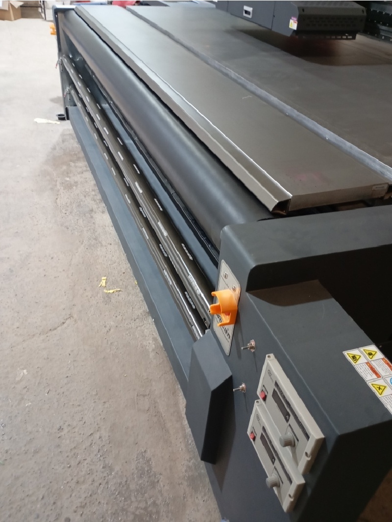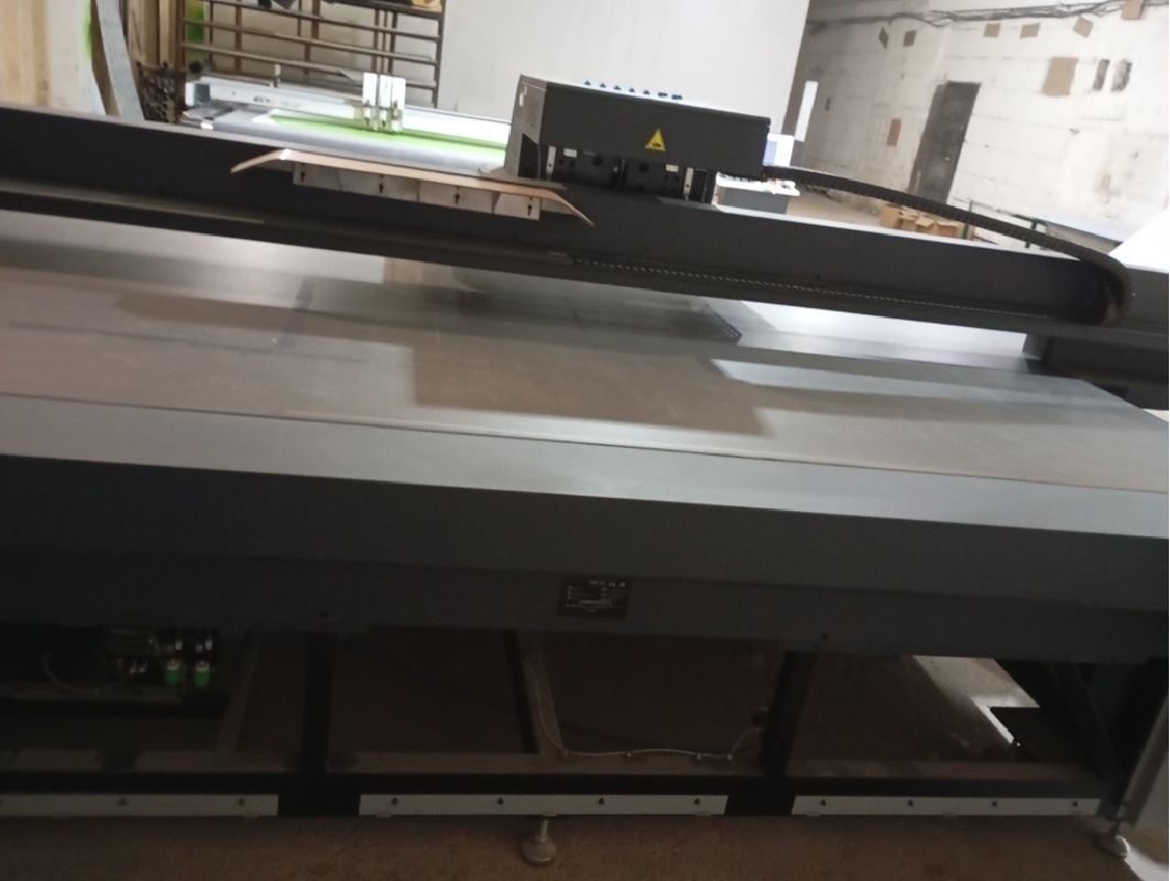 Характеристики: неподвижный рабочий стол, оснащенный вакуумным прижимом 3.2х2.0 м., рулонная опция 3.2 метра с системой регулировки натяжения материала и пневматическими фиксирующими кулачками. Форматный вакуумный стол с 4мя управляемыми зонами и отдельной зоной для рулонной опции. Печатающие головки Kyocera. Принтер подготовлен к установке 10 головок в 2 ряда. Магнитный линейный привод (Maglev) по оси X. Управляющая электроника D-System. Рельсы THK (Япония, THK Co., Ltd.). Энергоцепи Igus (Igus GmbH, Германия). Защитные бамперы (система защиты от столкновения) для УФ блоков. Система обратного вакуума (воздушная подушка) на основе обратного клапана. Сервопривода по всем осям, сдвоенный по оси Y. Оптические энкодеры (Lamotion, CША) с металлическими линейками высокого разрешения. Система полимеризации: LED UV жидкостная система охлаждения). Приводящие ремни Megadyne (Megadyne SPA, Италия). Встроенный ионизатор Qeepo. Вакуумная помпа (220В, 50Гц, 2,2кВт, 9А) с дистанционным управлением - 2 шт. Портал с клиренсом 100мм. Регистрационные пины для базирования материала с цифровым контролем положения. Педаль переключения на Up Vacuum (воздушная подушка). Переключение через обратный клапан с электронным управлением. RIP Caldera. установлено 5 головок Kyocera 2хCMYK+White