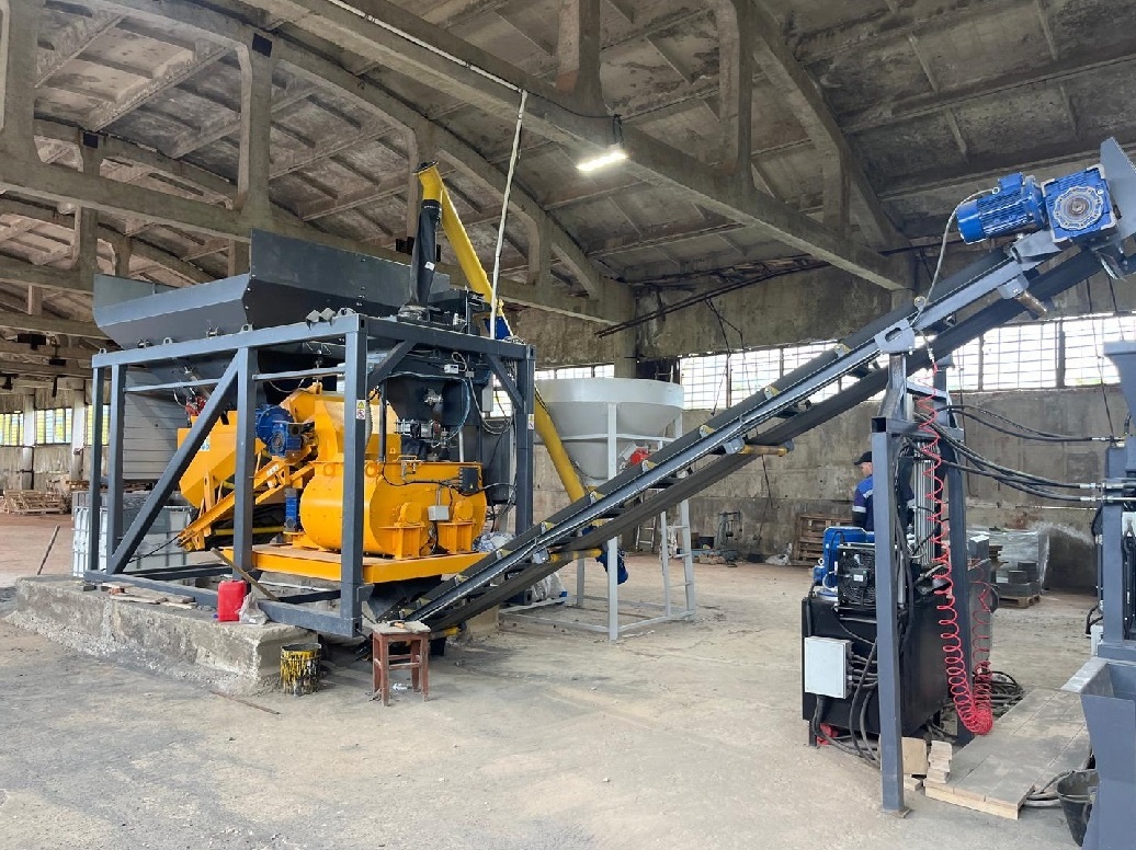 В составе: двухвальный бетоносмеситель БП-2Г-375, рама опорная, дозирующий комплекс ДКМ-8, блок дозаторов БД-15, компрессор СБ4/C-200.LB30-3.0, пульт управления автоматический, ленточный конвейер ЛК 7-0,5, насос NM 40/12F/A, насос MXH 202E, растариватель биг-бегов цемента РМК-2М, шнек d168x4000, вибратор MVE 300/3, одновальный бетоносмеситель БП-1Г-100, ленточный конвейер ЛК 5-0,5