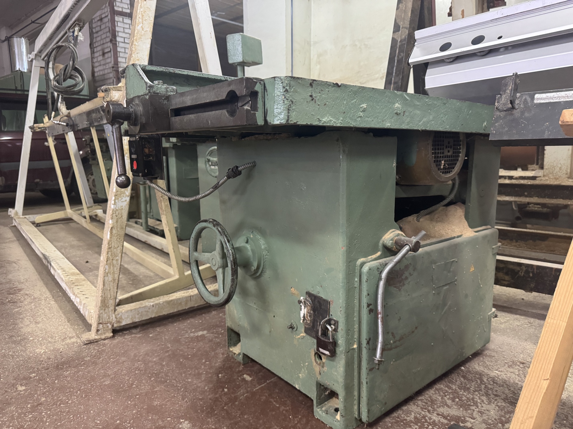Продаем надежный станок произведенный Уссурийским Станкостроительным Заводом в 1992г. Станок круглопильный универсальный модели Ц6-2 предназначен для продольной и поперечной распиловки досок, брусьев, древесных плит и листовых материалов (ДСП, ДВП, фанера, и т.п.). Станина выполнена в виде прочной литой чугунной отливки коробчатой формы, что обеспечивает устойчивость и долговечность станка. С помощью механизма подъема можно регулировать высоту выступания пильного диска над рабочим столом, адаптируя глубину реза под нужды конкретной операции. Состояние - хорошее, рабочее.