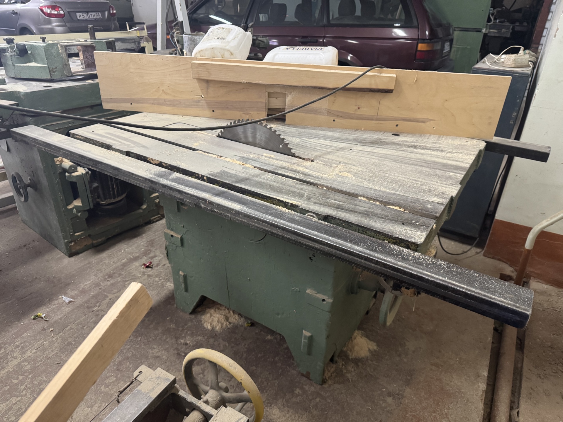 родаем надежный станок произведенный в 1991г. Станок круглопильный универсальный модели Ц6-2 предназначен для продольной и поперечной распиловки досок, брусьев, древесных плит и листовых материалов (ДСП, ДВП, фанера, и т.п.). Станина выполнена в виде прочной литой чугунной отливки коробчатой формы, что обеспечивает устойчивость и долговечность станка. С помощью механизма подъема можно регулировать высоту выступания пильного диска над рабочим столом, адаптируя глубину реза под нужды конкретной операции. Состояние - хорошее, рабочее.