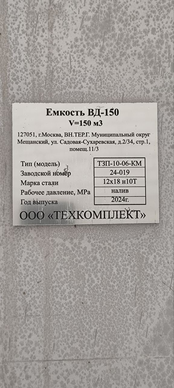 | Сборник спирта двустенный V=150м3 | 3 штуки |