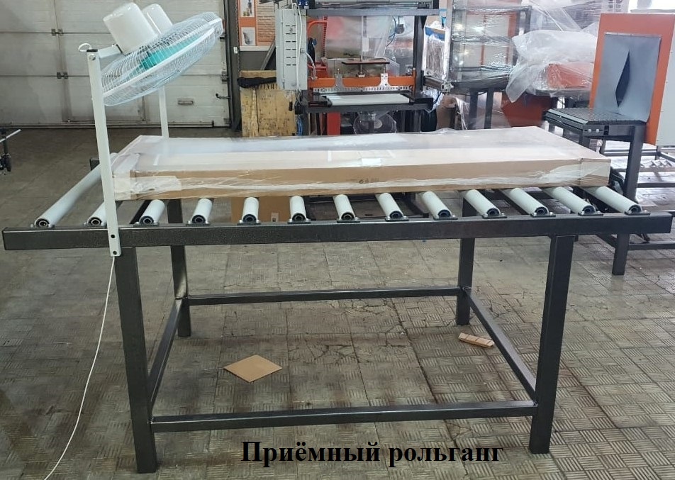 Модуль Приемный рольганг представляет собой сборную металлическую конструкцию, состоящую из несущей рамы, роликов и вентиляторов охлаждения продукции. Рольганг предназначен для накопления и охлаждения готовой продукции.