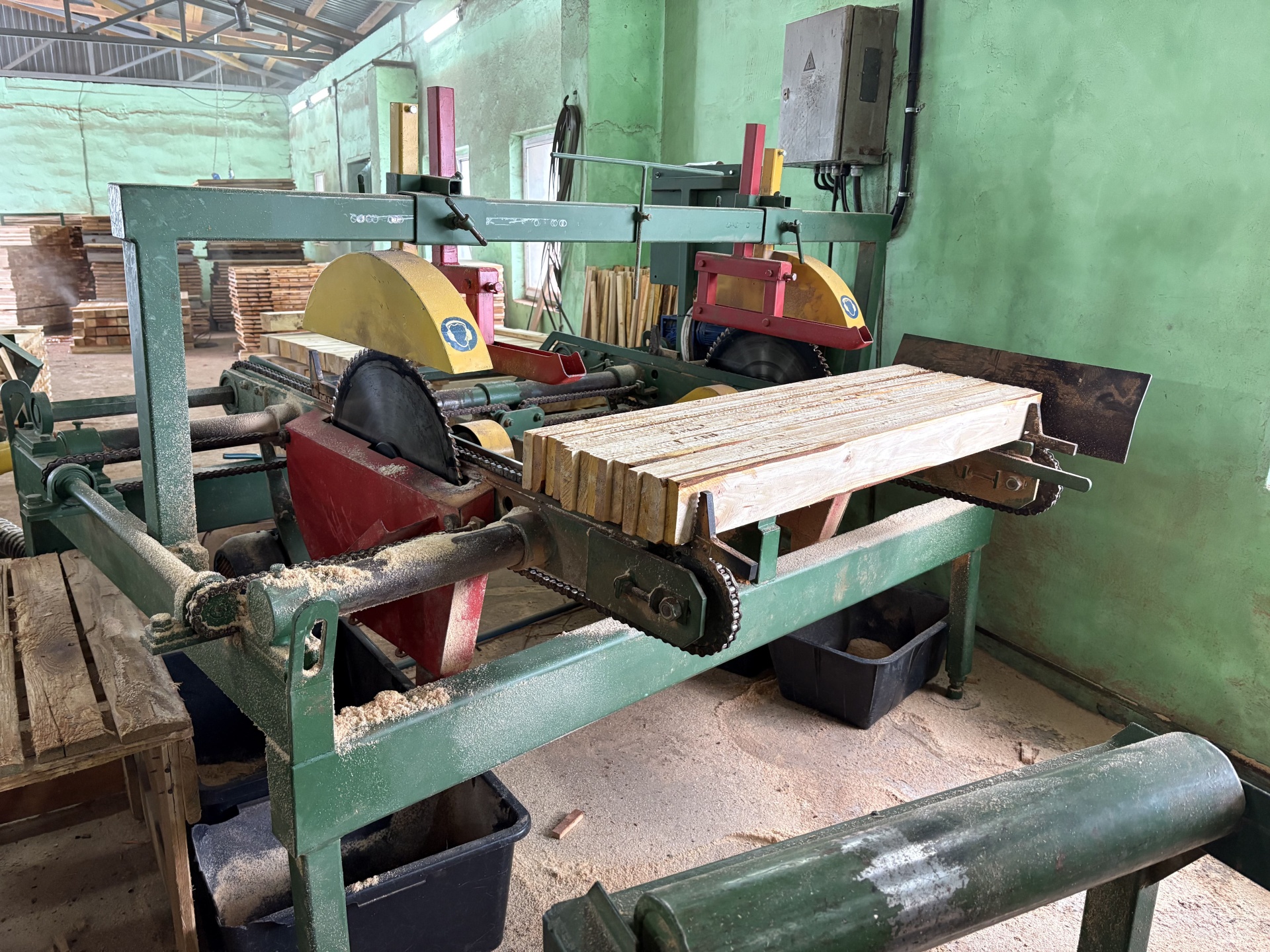 5. Станок деревообрабатывающий многопильный DD-1, с входным и выходным рольгангами, ширина обрабатываемого бруса до 600 мм, толщина обрабатываемого бруса до 110 мм, (двигатель 30 кВт)