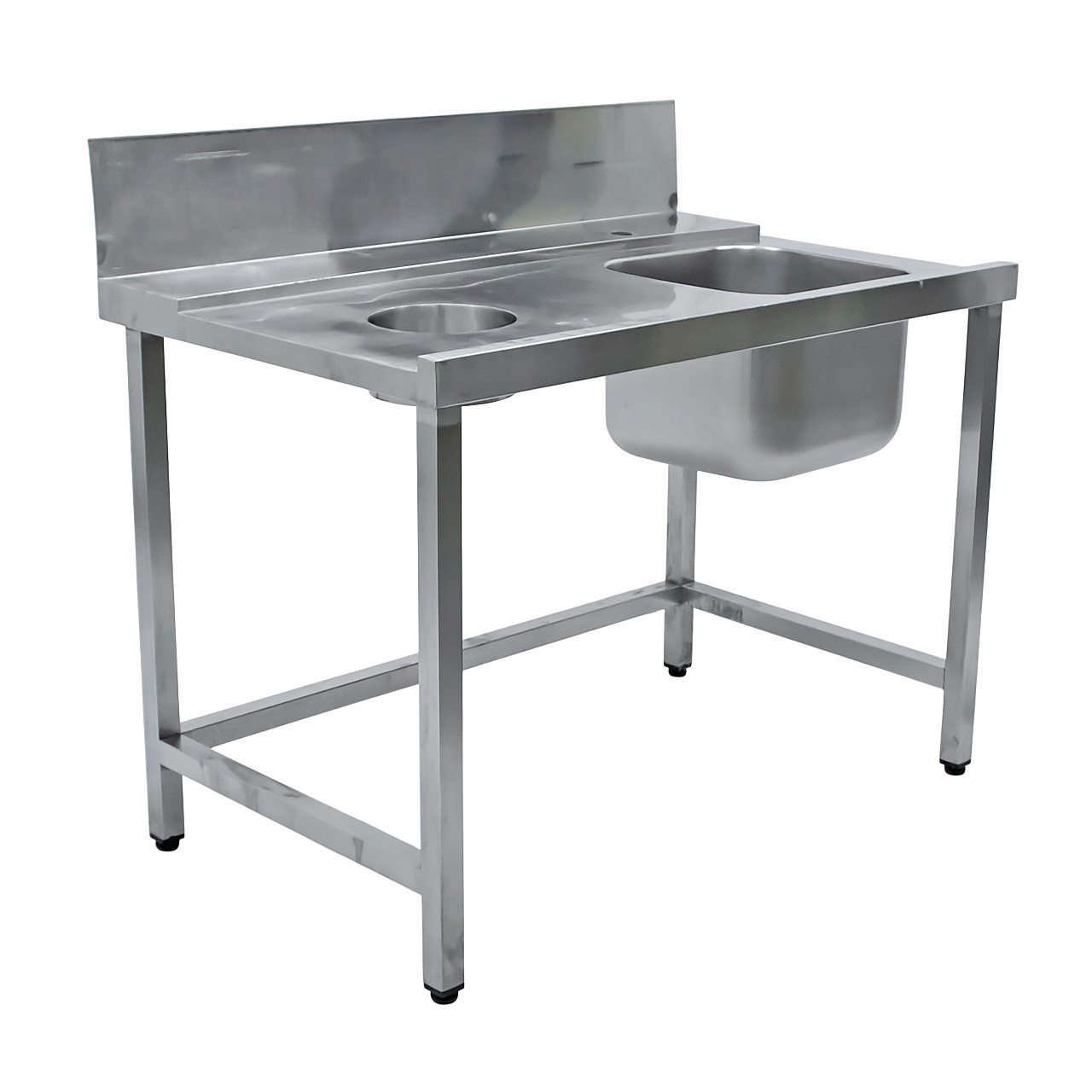 Стол предмоечный 1200х750х1070 левый (1 ванна, отверстие для отходов) используется на любом предприятии общественного питания. Она предназначена для мытья рыбы, продуктов питания, инвентаря и т.п. Мойка выполнены из пищевой нержавеющей стали. Каркас из нержавеющей стали. Стойки ванны оснащены регулируемыми по высоте опорами.