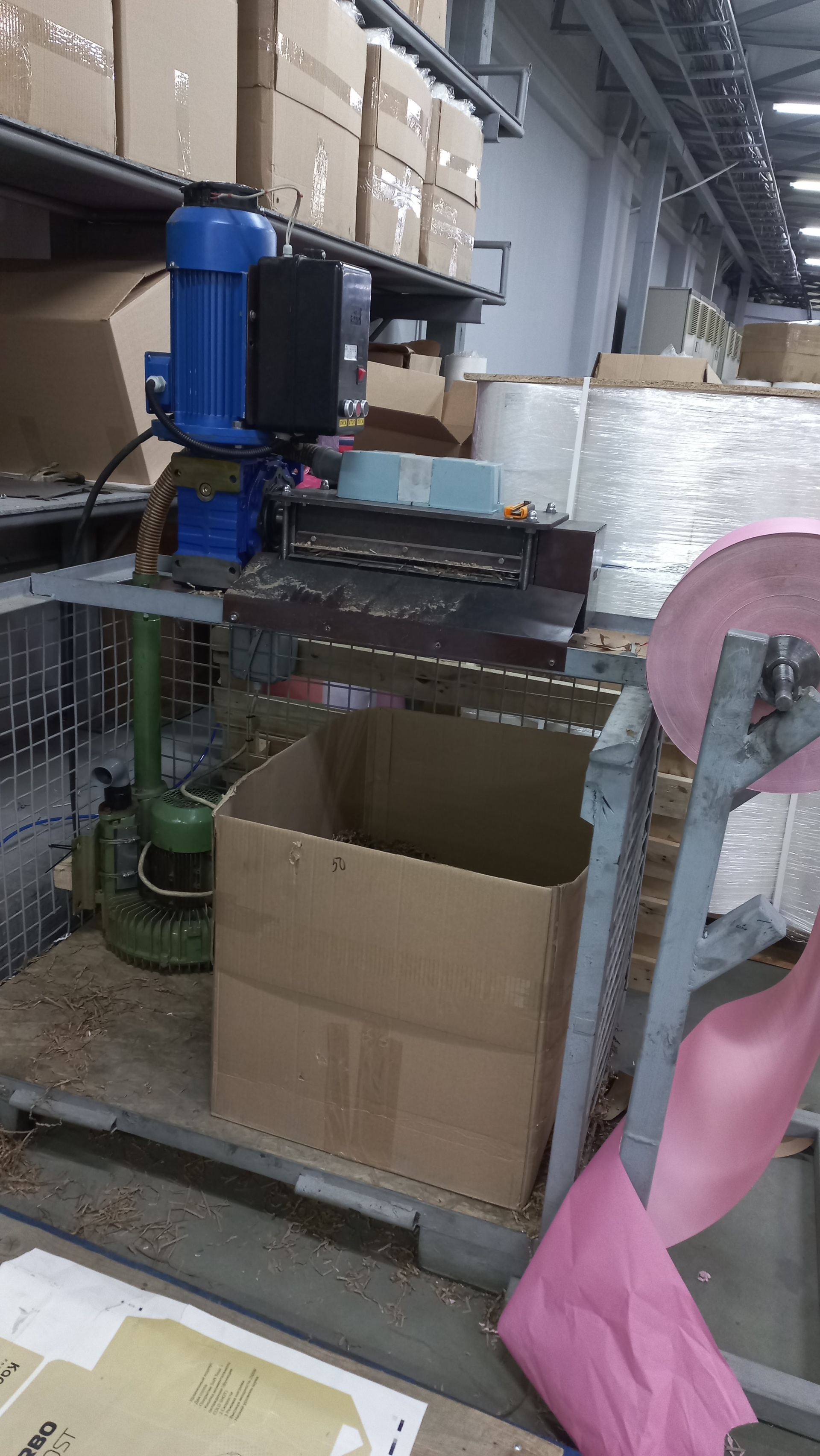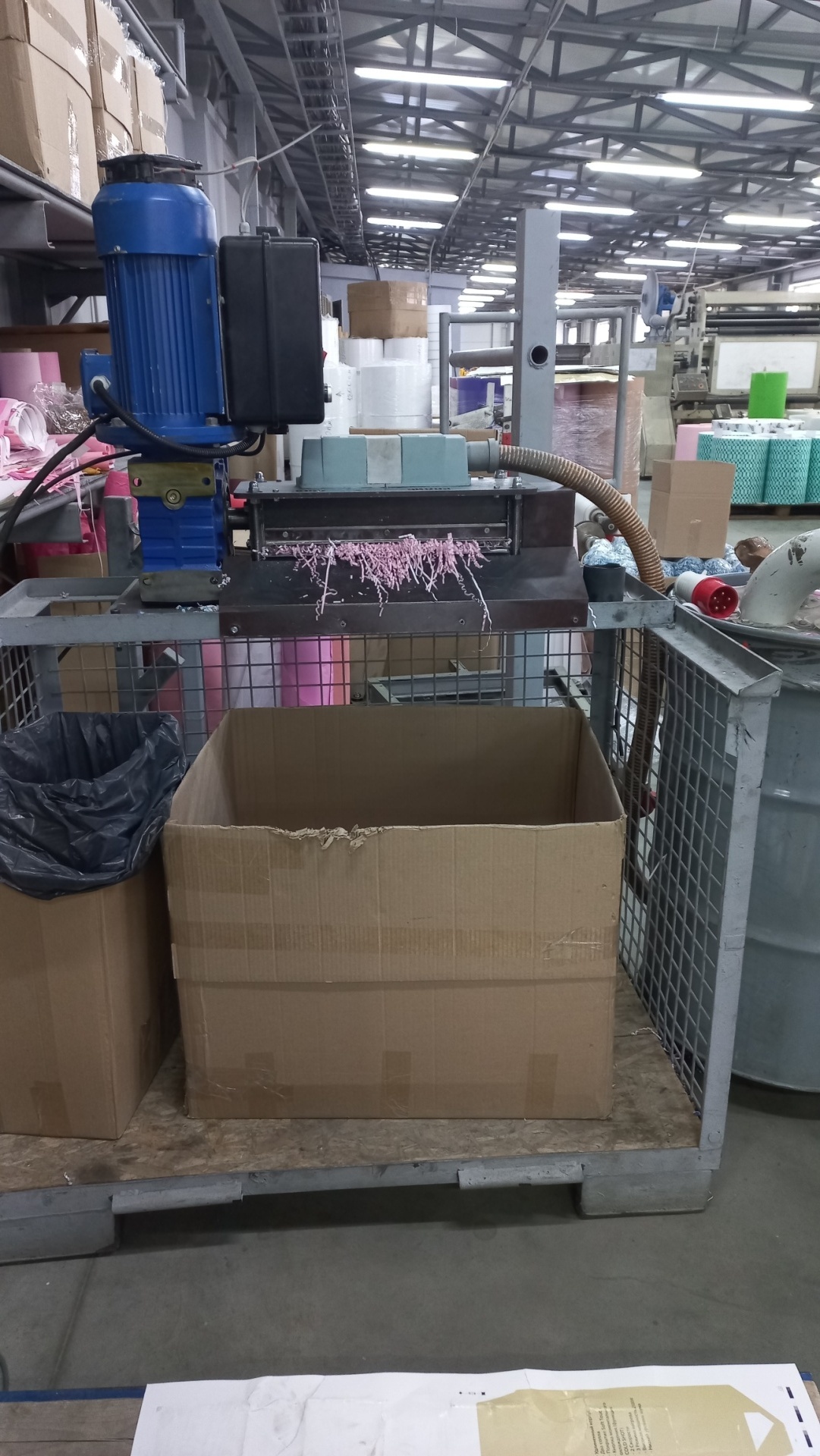 Станок по промышленному производству наполнителя из бумаги и картона (шредер). Ширина входного полотна 400 мм, ширина выходных лент 3 мм.