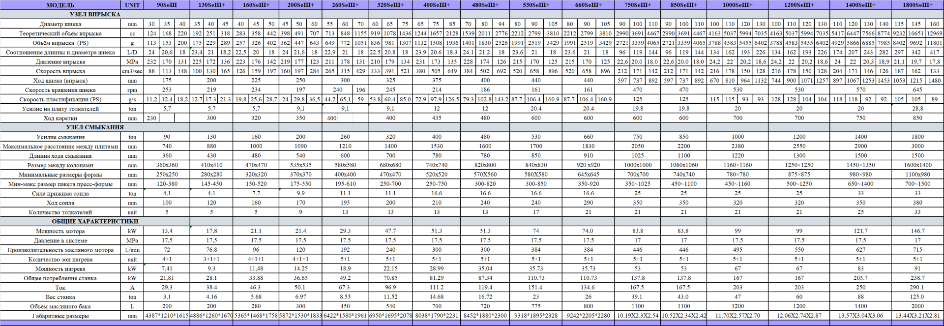 Энергоэффективные термопластавтоматы с сервоприводом (серия SeⅢ+) с усилием смыкания от 90 до 1800 тонн
