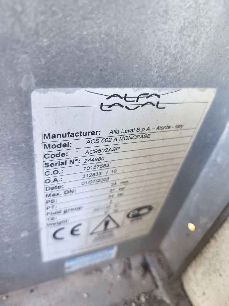 Конденсатор: Alfa Laval ACS 502 A (2 мощных осевых вентилятора, монофазный).