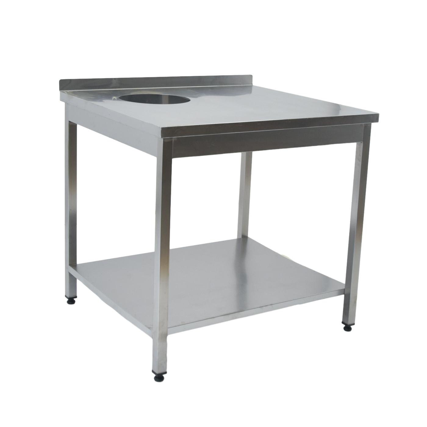 Стол производственный с отверстием для сбора отходов предназначен для подготовки ингредиентов и приготовления блюд в заведениях общественного питания и торговли. Отверстие позволяет расположить мусорное ведро прямо под столом и избавляться от отходов, не прерывая рабочего процесса. Нержавеющая сталь высокого качества способна выдерживать большие нагрузки, устойчива к повышенной влажности, перепадам температуры и не впитывает запахи. Изделие не требует трудоемкого ухода и является экологичными.