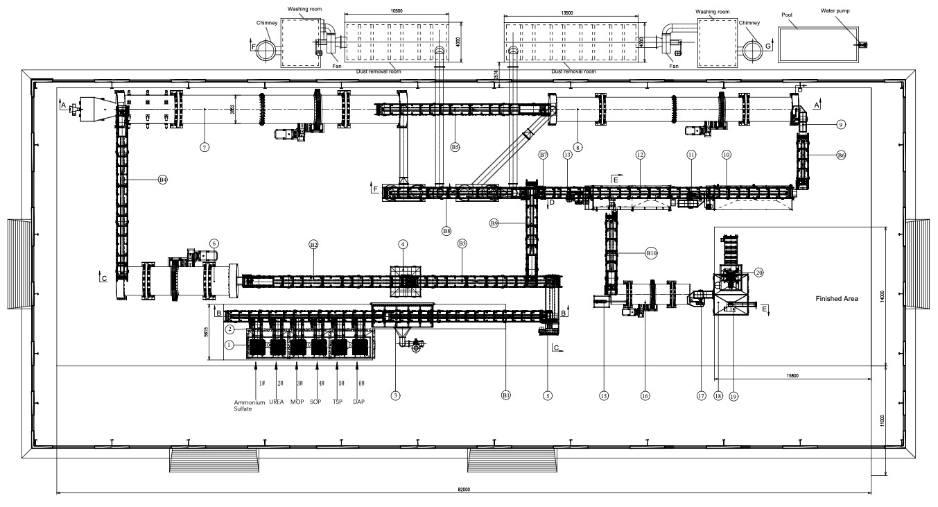 Прогнозируемая производительность: 20 тонн в час (144 000 тонн в год) удобрений NPK;