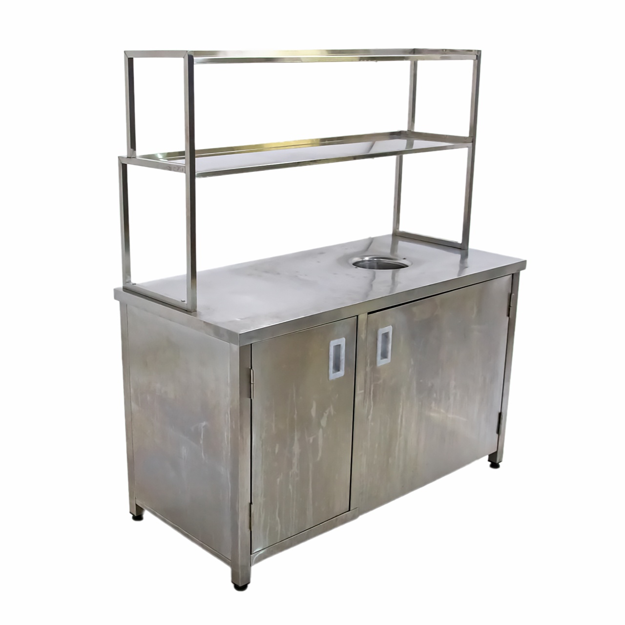 Cтол-тумба с распашными дверьми, отверстием для отходов выполнен из нержавеющей стали. Ножки регулируются по высоте.
