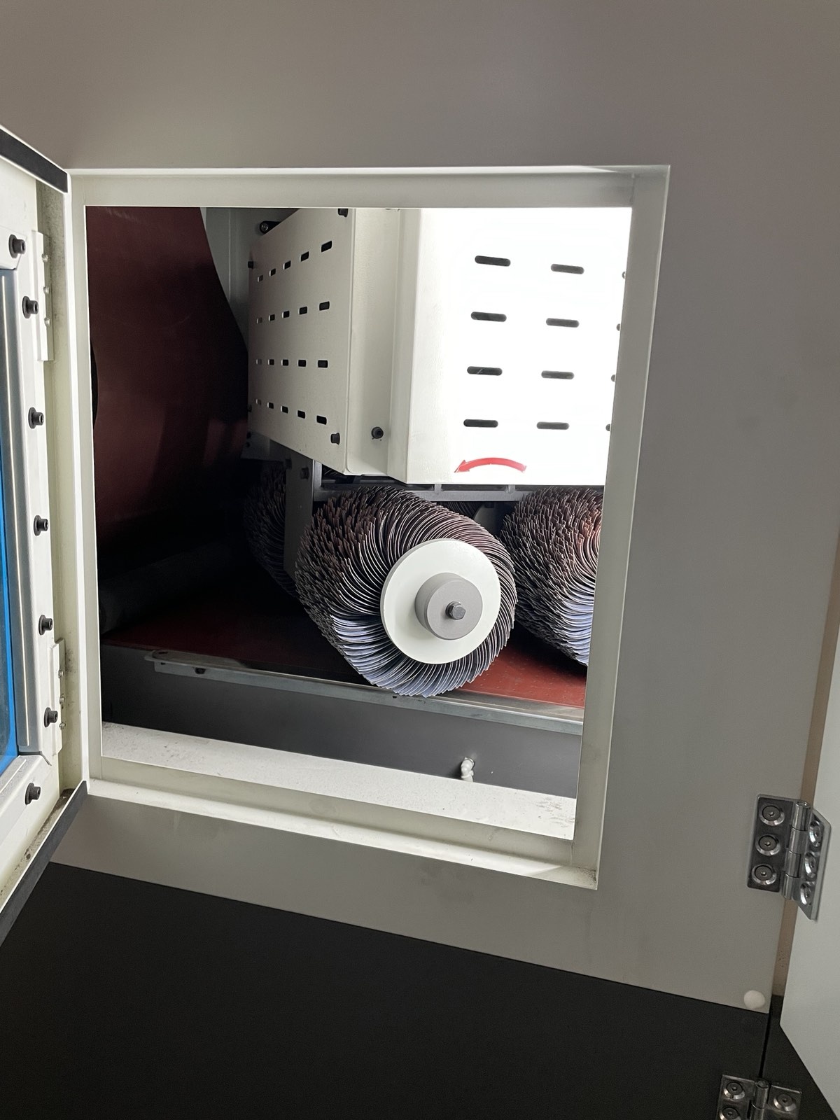 - Трёхсторонняя обработка роликами: 4 роликовые щётки (2 с прямым и 2 с обратным вращением) обеспечивают равномерную обработку по всему периметру без «мертвых зон».