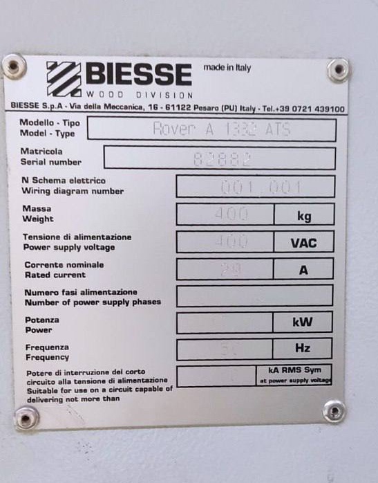 Технические характеристики Biesse Rover AS 1332: