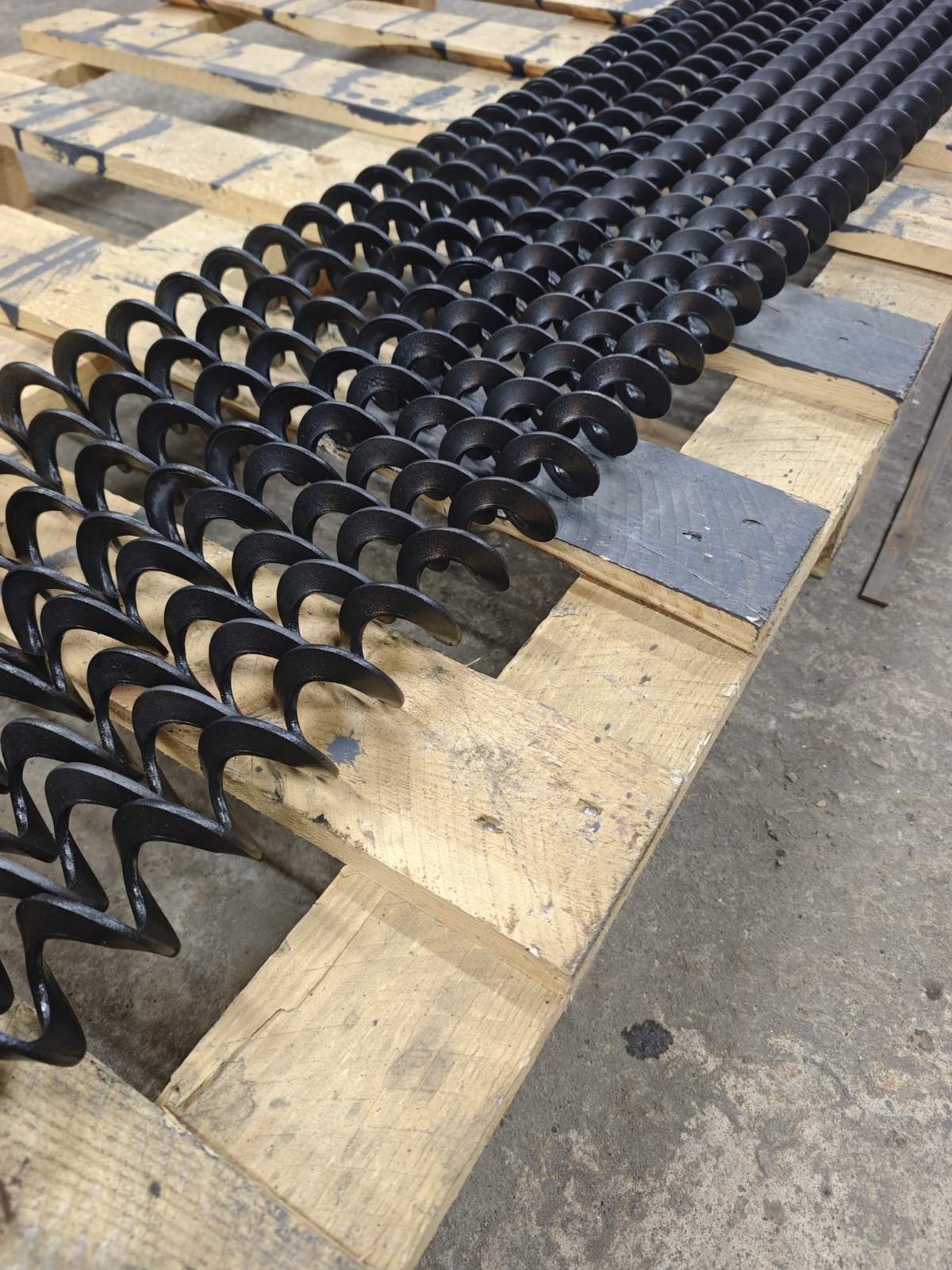 Сегментарные витки. Незаменимы при работе с тяжелыми, абразивными материалами (цемент, щебень, буровой шлам). Мы изготавливаем отдельные сегменты из толстолистового металла, что гарантирует колоссальный запас прочности.