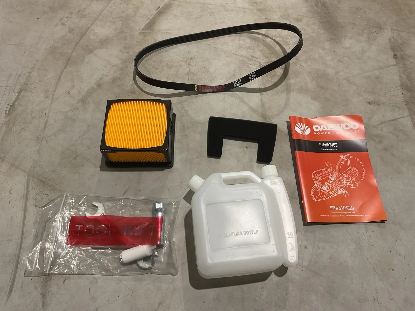В комплекте обычно поставляются руководство, инструменты, фильтр, алмазный диск 350x12x25,4 и струна.
