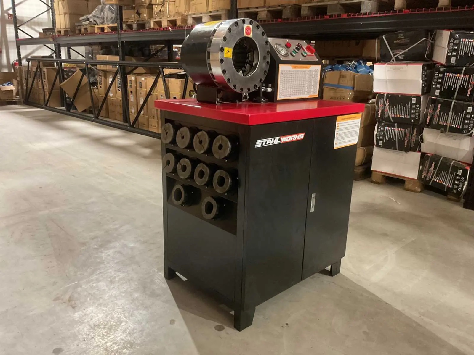 Stahlworks SW-51 — это профессиональный стационарный станок для обжима (кримпинга) гидравлических шлангов, предназначенный для использования в мастерских и на производстве.