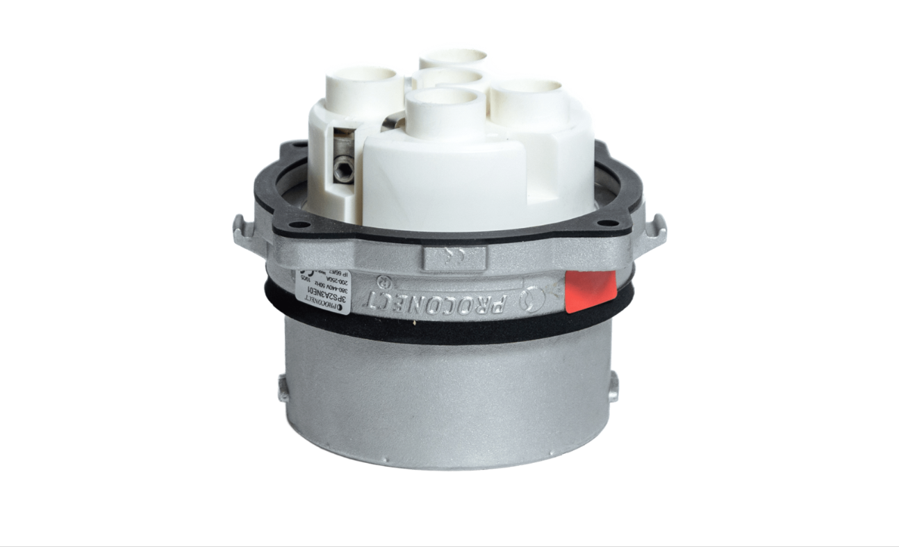 Встраиваемая панельная вилка Proconect 3PS2A3NE01 рассчитана на номинальный ток 250А и напряжение 380-440 В. Она имеет контактную группу 3P+N+E. Максимальное сечение одножильного провода составляет 120 мм², максимальное сечение многожильного провода 95 мм². Степень защиты IP66/67 гарантирует вам хорошую износостойкость оборудования. Все промышленные разъёмы Proconect 3PS200 соответствуют стандартам IEC 60 309 - 1, IEC 60 947-3, IEC 60 529, Décret № 88-1056. Вес вилки 3PS2A3NE01 составляет 1,48 кг.