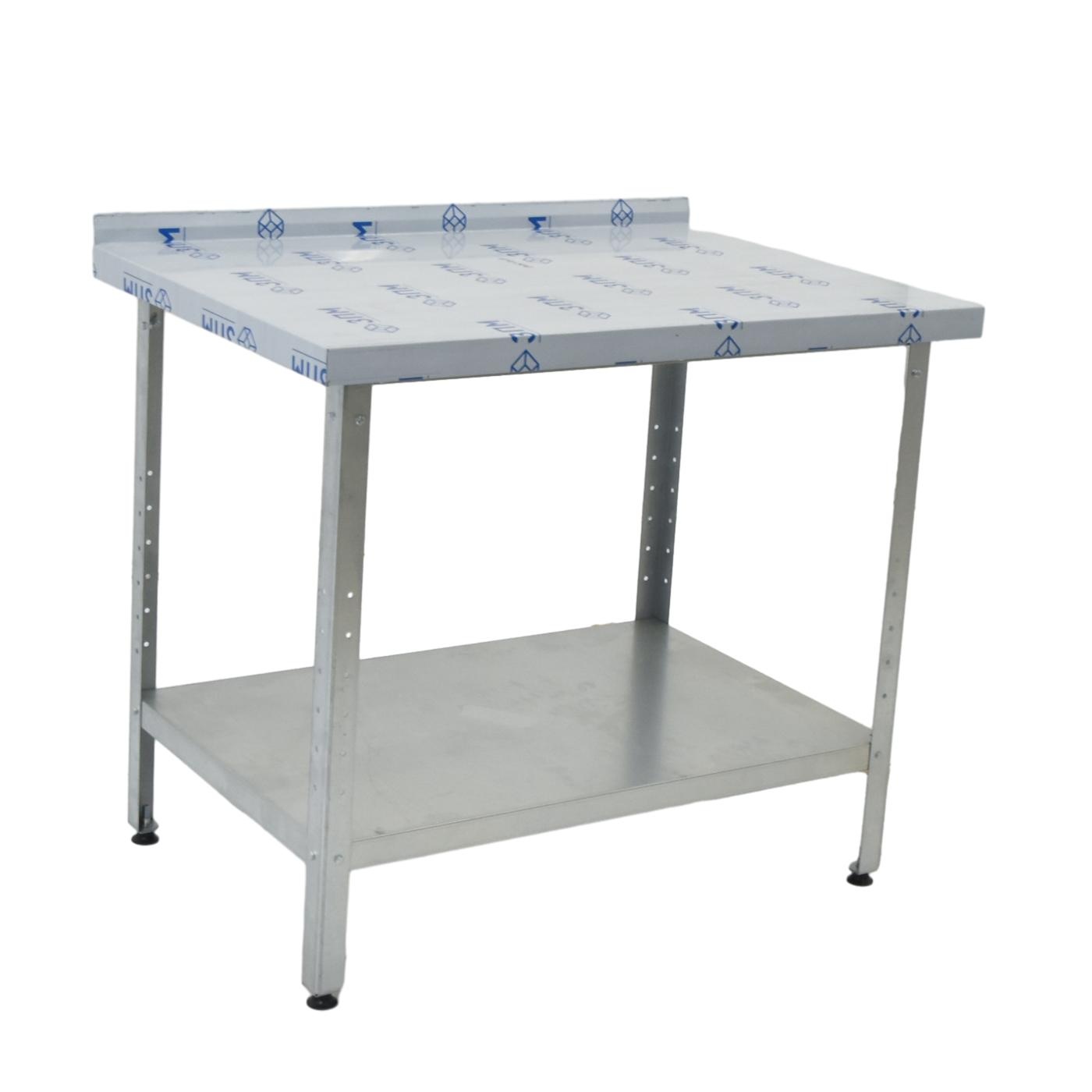 Стол производственный “ASSUM-Standart” со сплошной полкой из оцинкованной стали, с бортом.