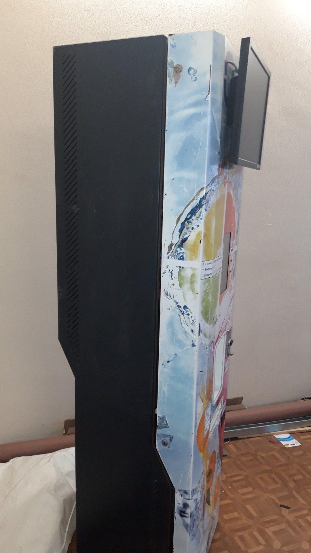 Монитор на вендинговом автомате, может показывать любую рекламу, какую вы загрузите. Монитор подключен к отдельному компютеру.