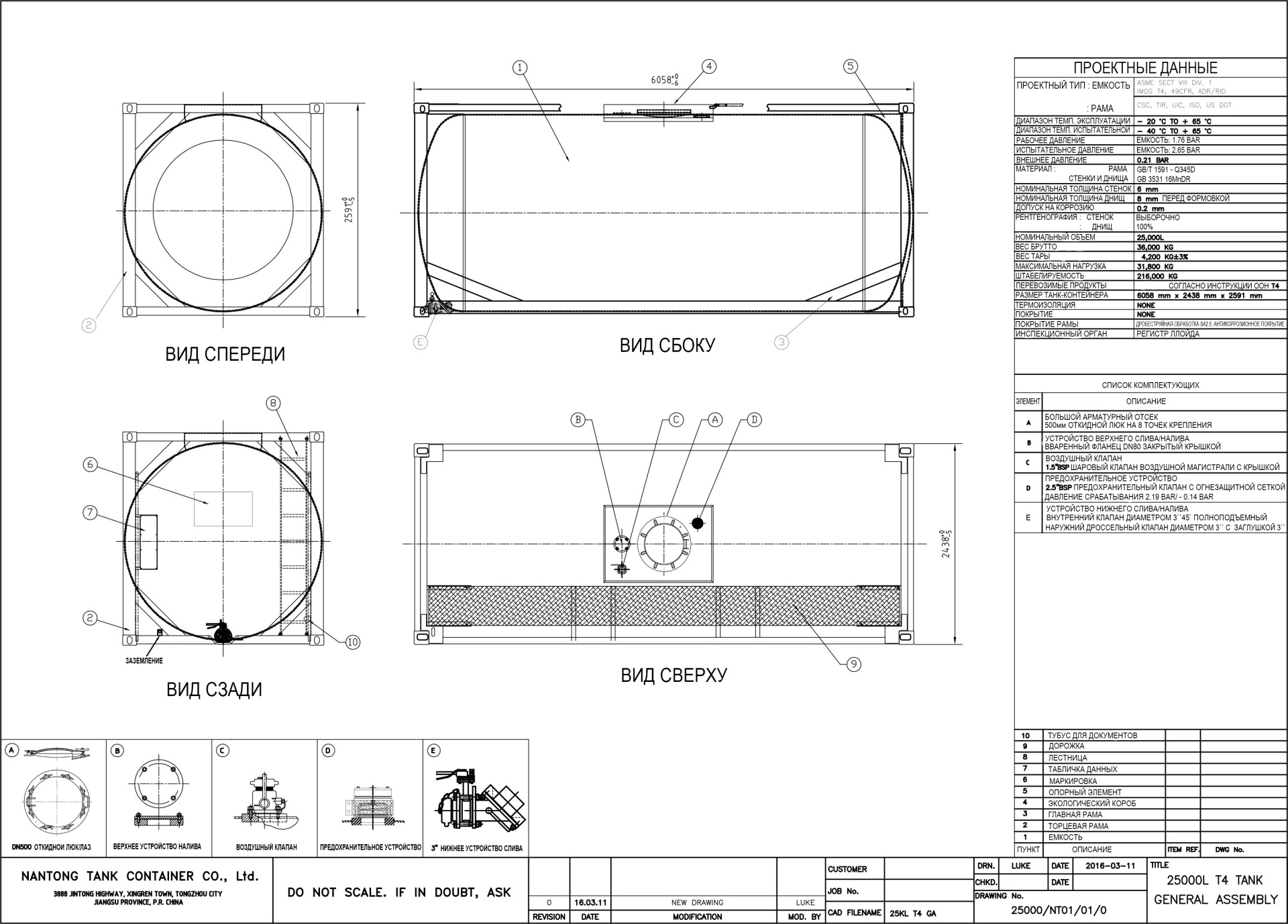 Материал изготовления стенок/днищ низколегированная сталь стандарт: GB 3531, марка: 16MnDR