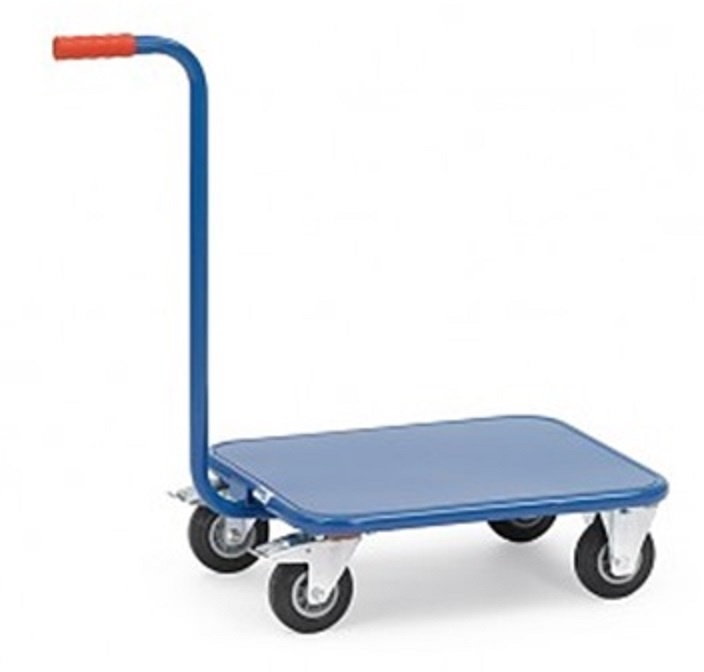 Конструкция ролика изготовлена из стальных труб и деталей, соединенных между собой методом сварки. Высококачественное, порошковое покрытие бриллиантово-синего цвета в соответствии RAL 5007 гарантирующее длительную эксплуатацию без царапин и сколов на поверхности. Платформа тележки произведена из листовой стали толщиной листа 2 мм. Тележка может быть поставлена со стальной платформой из труб или платформой из дерева. Ручка снимаема. 2 управляемых и 2 не управляемых колеса покрытых эластичной резиной с размерами 125 х 38 мм. Оси колес вращаются на роликовых подшипниках. Тормоза только на управляемых колесах. Тележка производится в строгом соответствии европейских норм Norm EN 1757-3 отвечающих критериям на «надежность платформенных тележек».