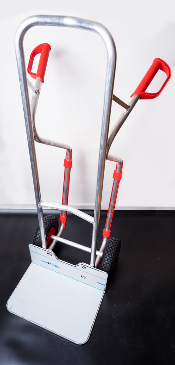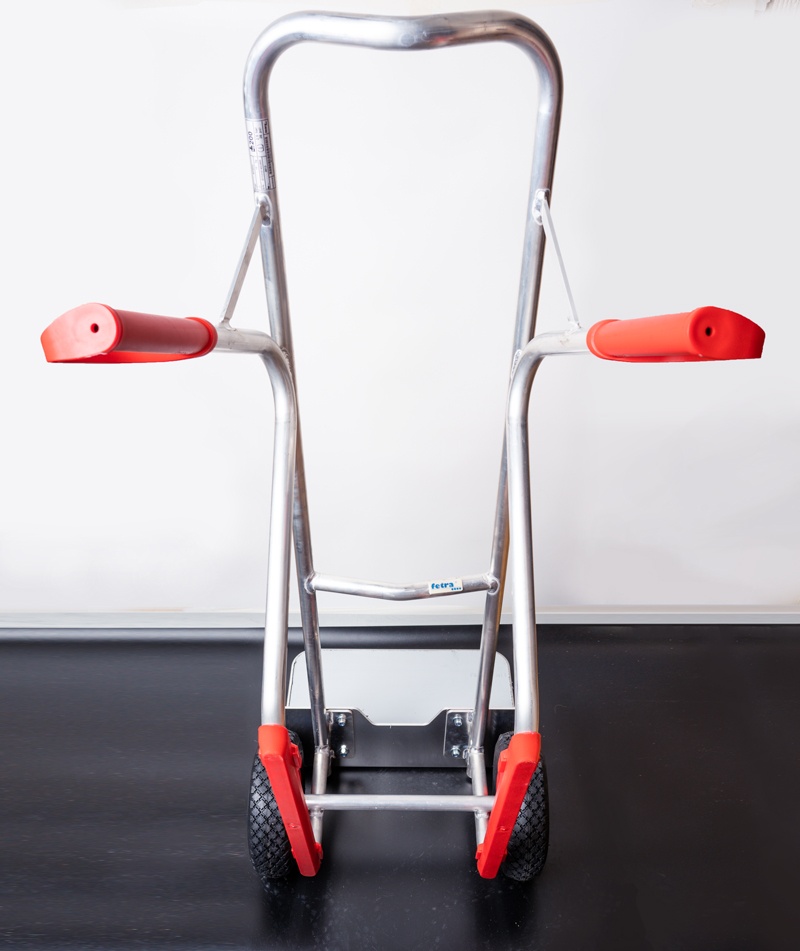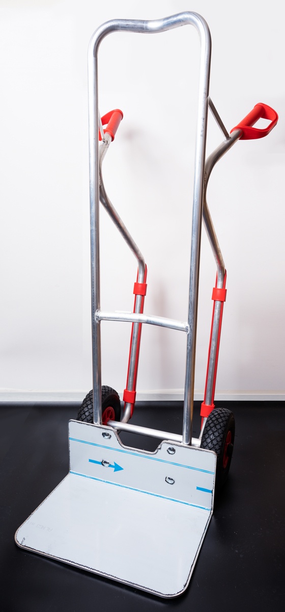 Алюминиевая тележка изготовлена из алюминиевых труб и имеют алюминиевую грузовую платформу. Тележка очень легкая по весу и удобная в использовании. Высокое качество сварки и природный цвет алюминия. Алюминиевая платформа, снимаема и может быть заменена на иную. Колеса камерные на пластмассовых ободьях. Оси колес вращаются на роликовых подшипниках. Пластмассовые ручки и лонжероны (красного цвета) заменяемы. Ручки предохраняют руки от холода и имеют предохранительные серьги для надежного удержания и транспортировки тележки, а так же исключают травмы рук, а лонжероны предохраняют металлические упоры от повреждений. Высокое качество используемых материалов, самое современное оборудование, использованное при производстве и обработке деталей тележки, а главное – многолетний опыт эксплуатации подобных тележек доказывает, что это товар очень высокого качество по соответствующей ему цене. Гарантия производителя – 10 лет эксплуатации.