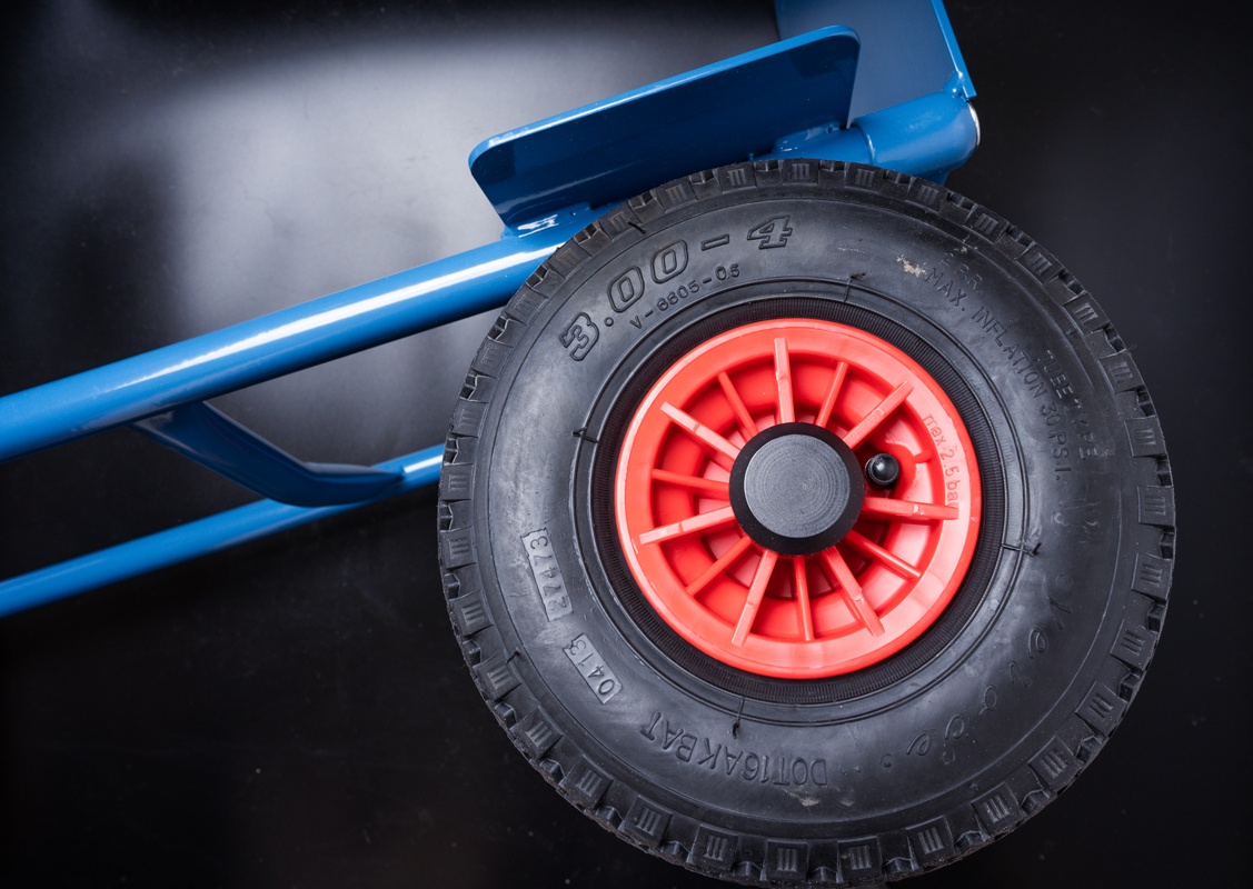 | Номер для заказа | Грузоподъемность (кг) | Высота (мм) | Длина грузовой платформы (мм) | Ширина грузовой платформы (мм) | Общая ширина тележки (мм) | Камерные колеса с размерами (мм) | Вес тележки (кг) | Цена 1 шт. /руб. |