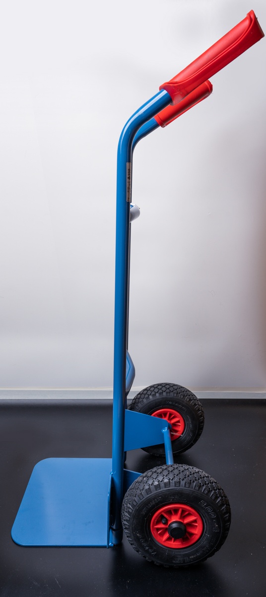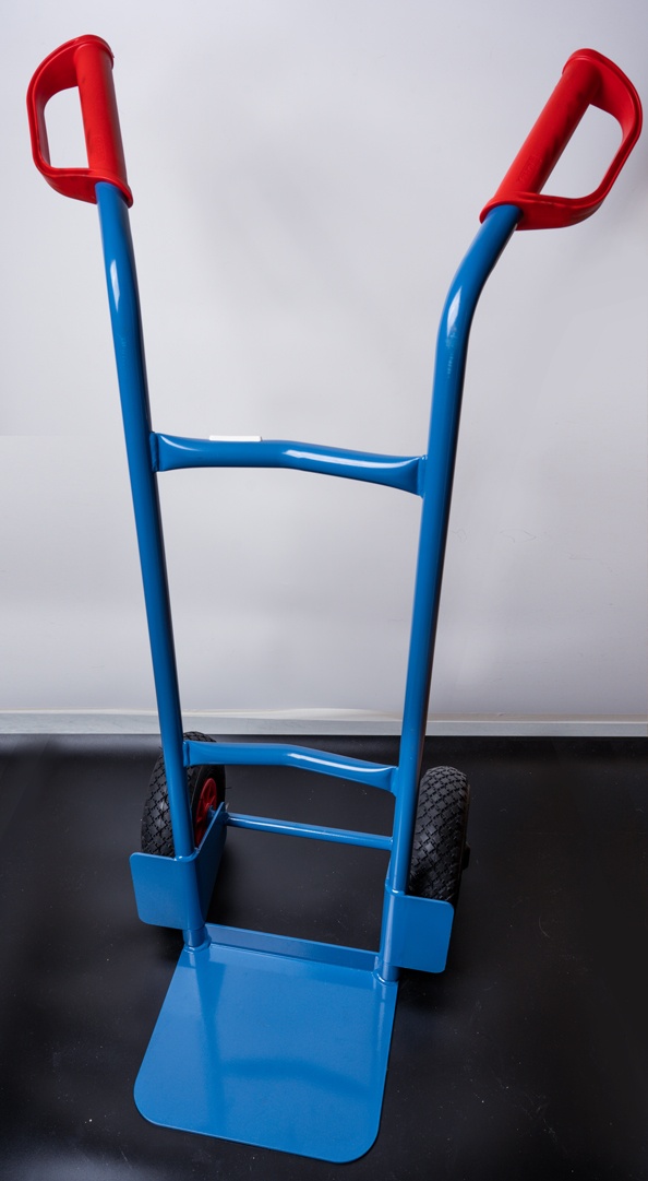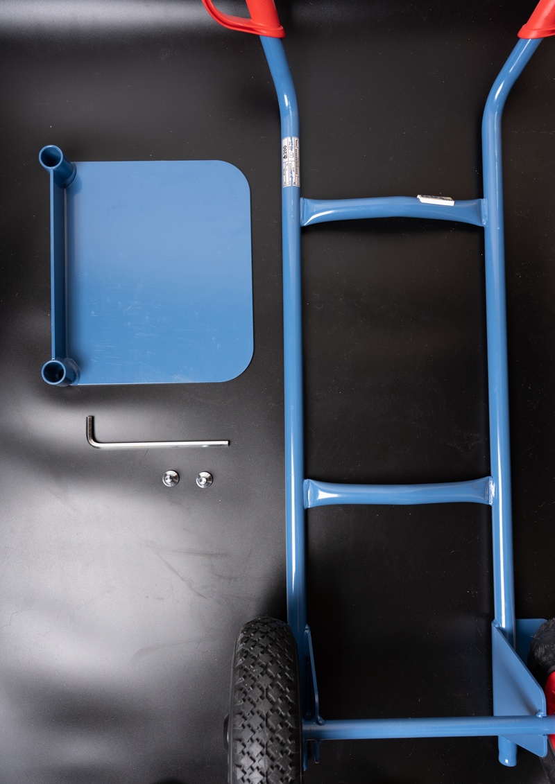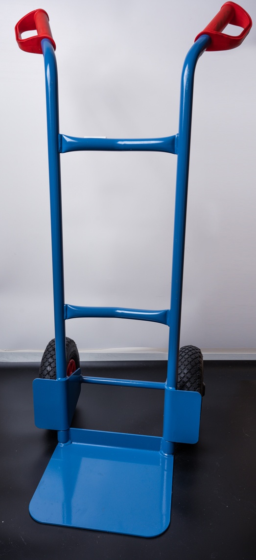 Тележка изготовлена из стальных труб. Имеет стальную грузовую платформу. Стабильная сварная конструкция. Высококачественное, порошковое покрытие бриллиантово-синего цвета в соответствии RAL 5007 гарантирующее длительную эксплуатацию без царапин и сколов на поверхности. Тележка поставляется только бриллиантово-синего цвета. Пластмассовые ручки (заменяемы) предохраняют руки от холода и имеют предохранительные серьги для надежного удержания и транспортировки тележки, а так же исключают травмы рук. Колеса в камерном исполнении на пластмассовых ободьях. Оси колес вращаются в роликовых подшипниках. Тележка поставляется в разобранном виде и требует очень простой самостоятельной сборки. Высокое качество используемых материалов, самое современное оборудование, использованное при производстве и обработке деталей тележки, а главное – многолетний опыт эксплуатации подобных тележек доказывает, что это товар очень высокого качество по соответствующей ему цене. Гарантия производителя – 10 лет эксплуатации.
