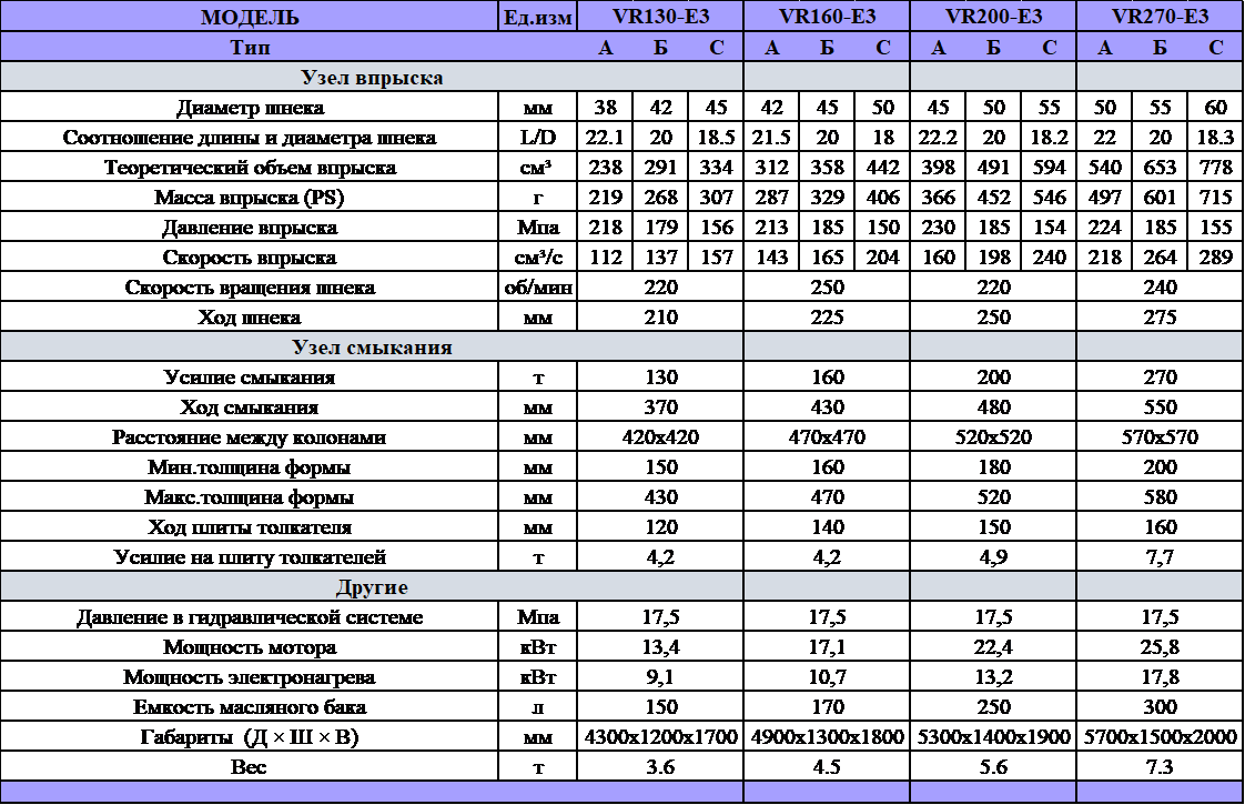 Термопластавтоматы гидравлические серия VR-E3 с усилием смыкания от 130 до 270 тонн.