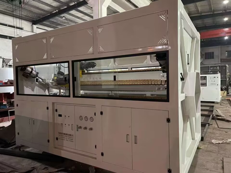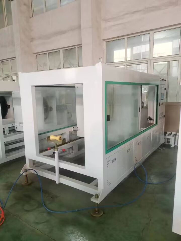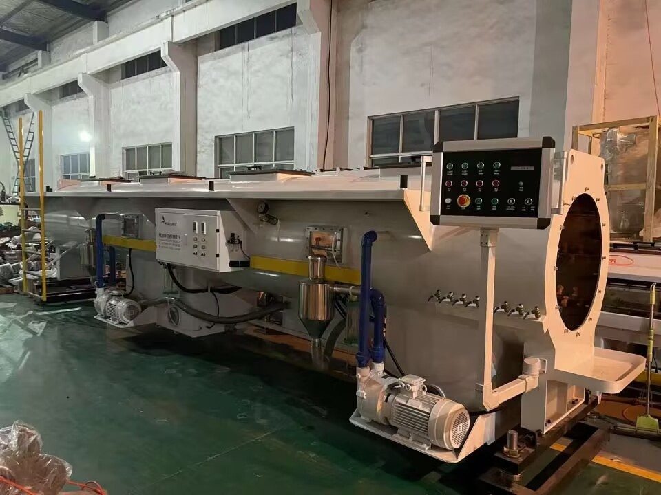 Заготовка тубы сразу же поступает в вакуумную калибровочную камеру для формования и охлаждения.