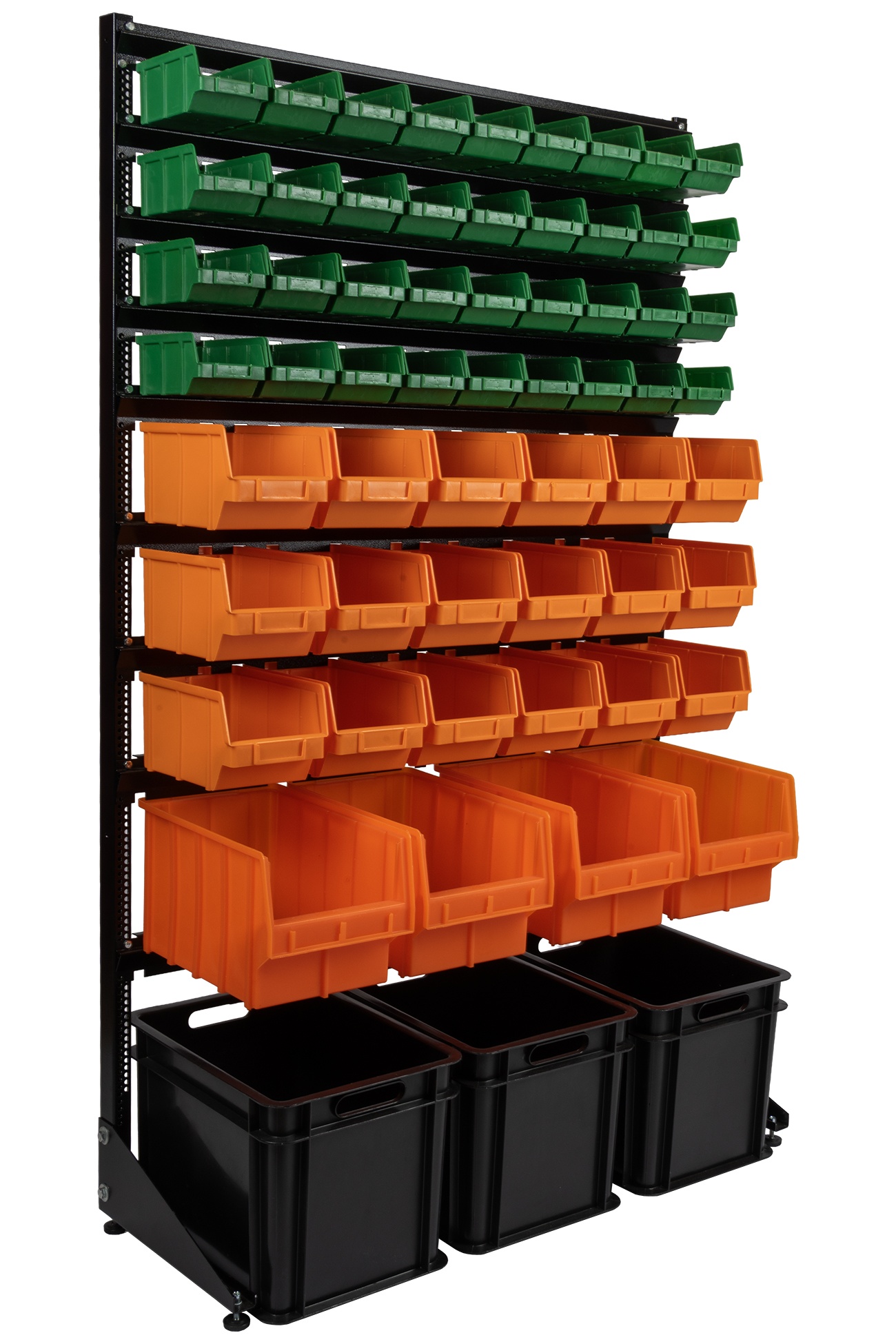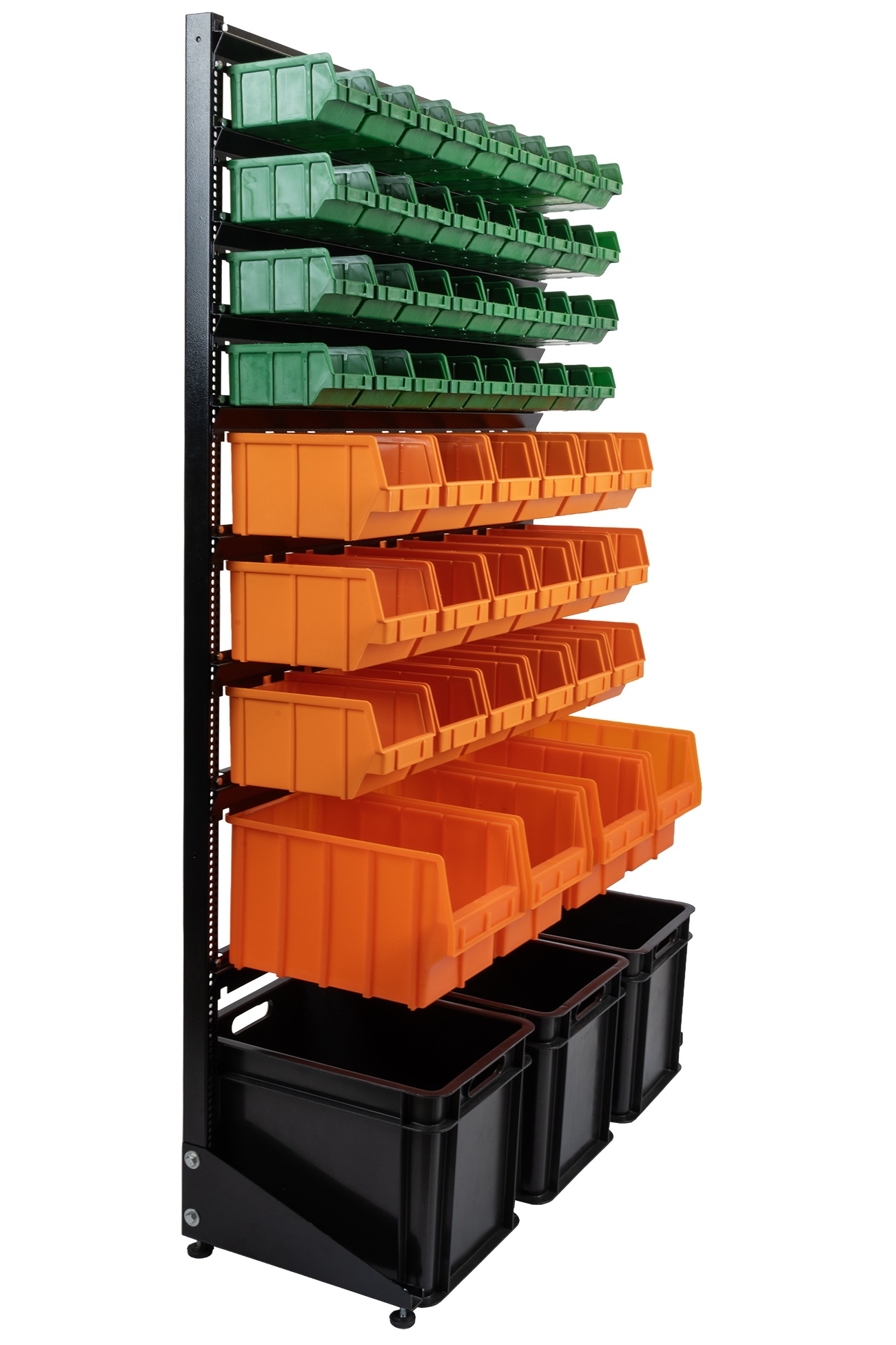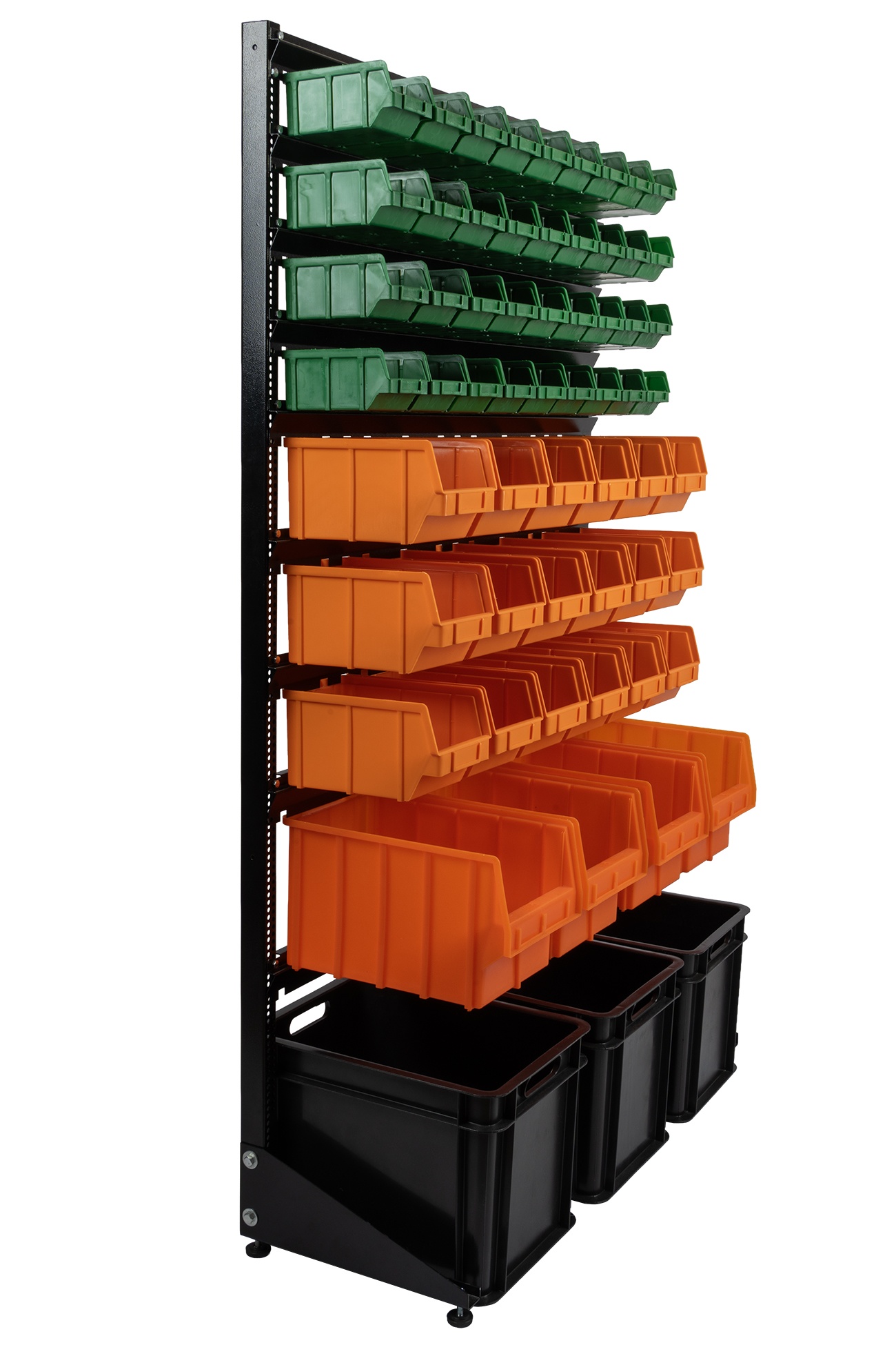 - Вместительный. На стеллаже возможно разместить от 48 ящиков до 162 шт. Выста стеллажа 1500 и 1800мм