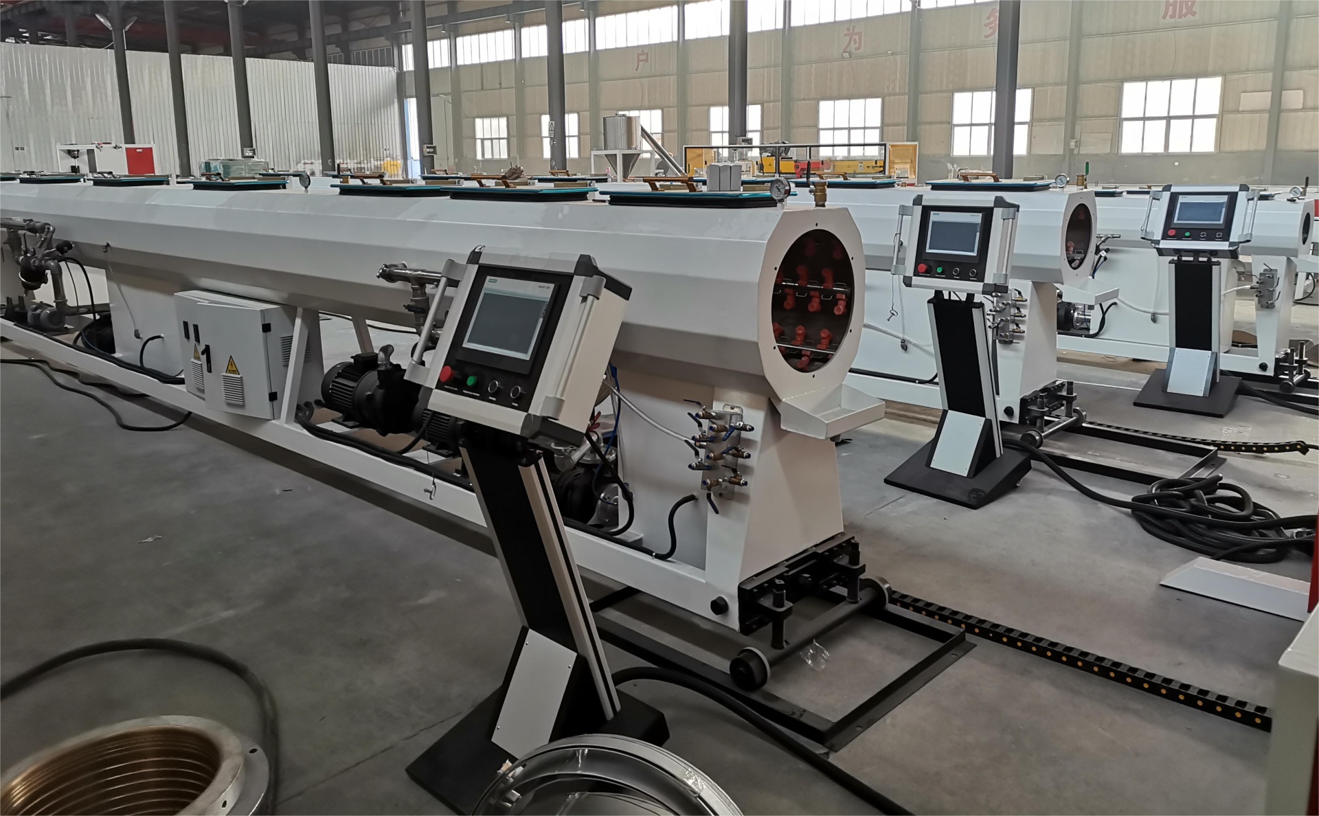 Он обладает высокой адаптируемостью и может производить трубы водоснабжения, дренажные трубы и трубы с резьбой различного диаметра (диаметр 16–800 мм) и толщины стенок, заменяя форму одной машиной.