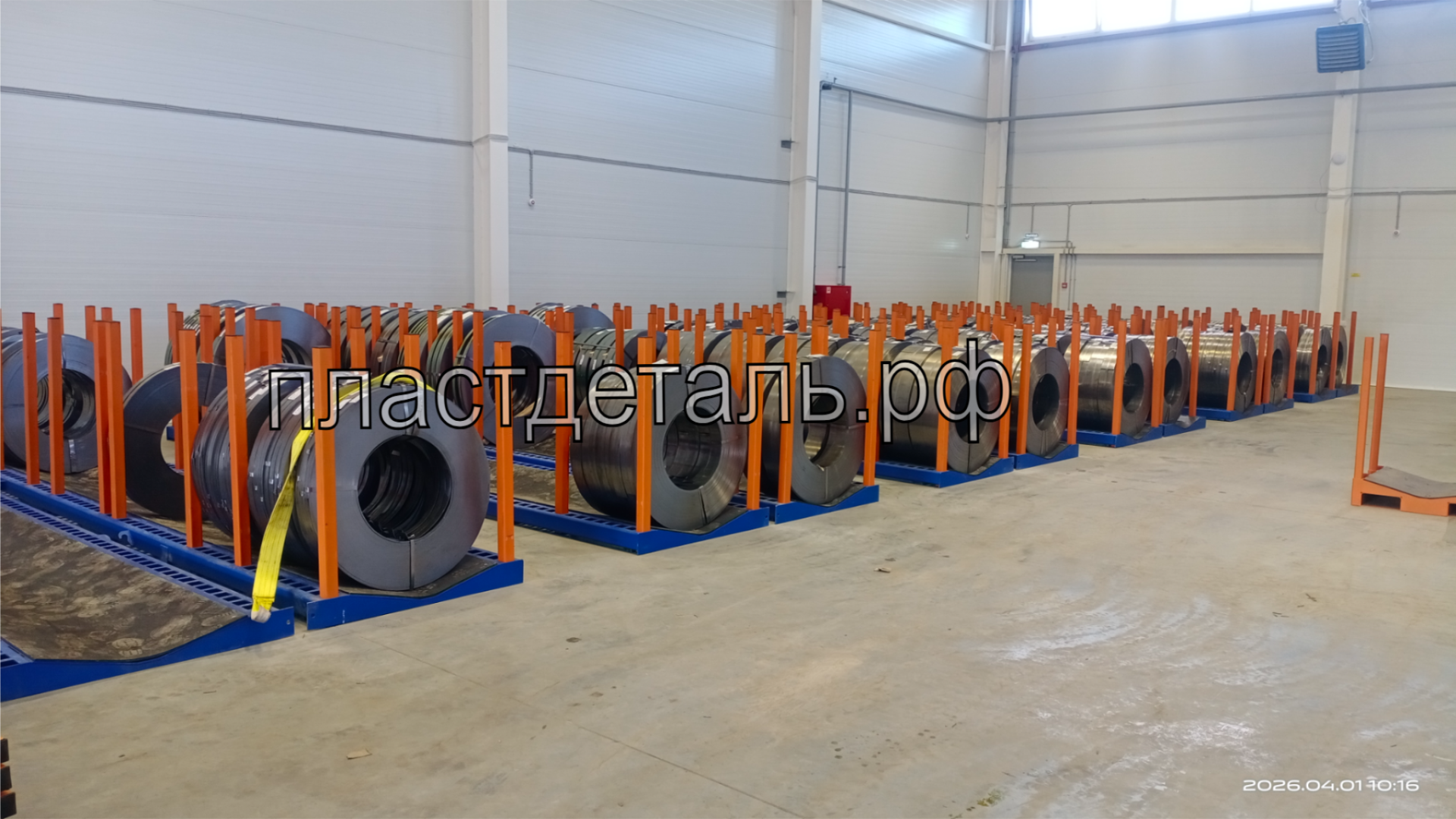 - Конструкция представляет из себя стальную раму с вертикально расположенными стойками, которые позволяют безопасно складировать штрипс в вертикальном положении и забирать в производство необходимый рулон штрипса.