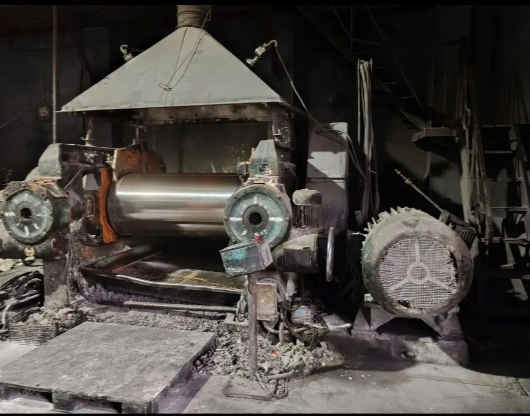 Окружная скорость валков: переднего 30,4 м/мин; заднего 34,6 м/мин. Производительность вальцов ~80 л/мин.