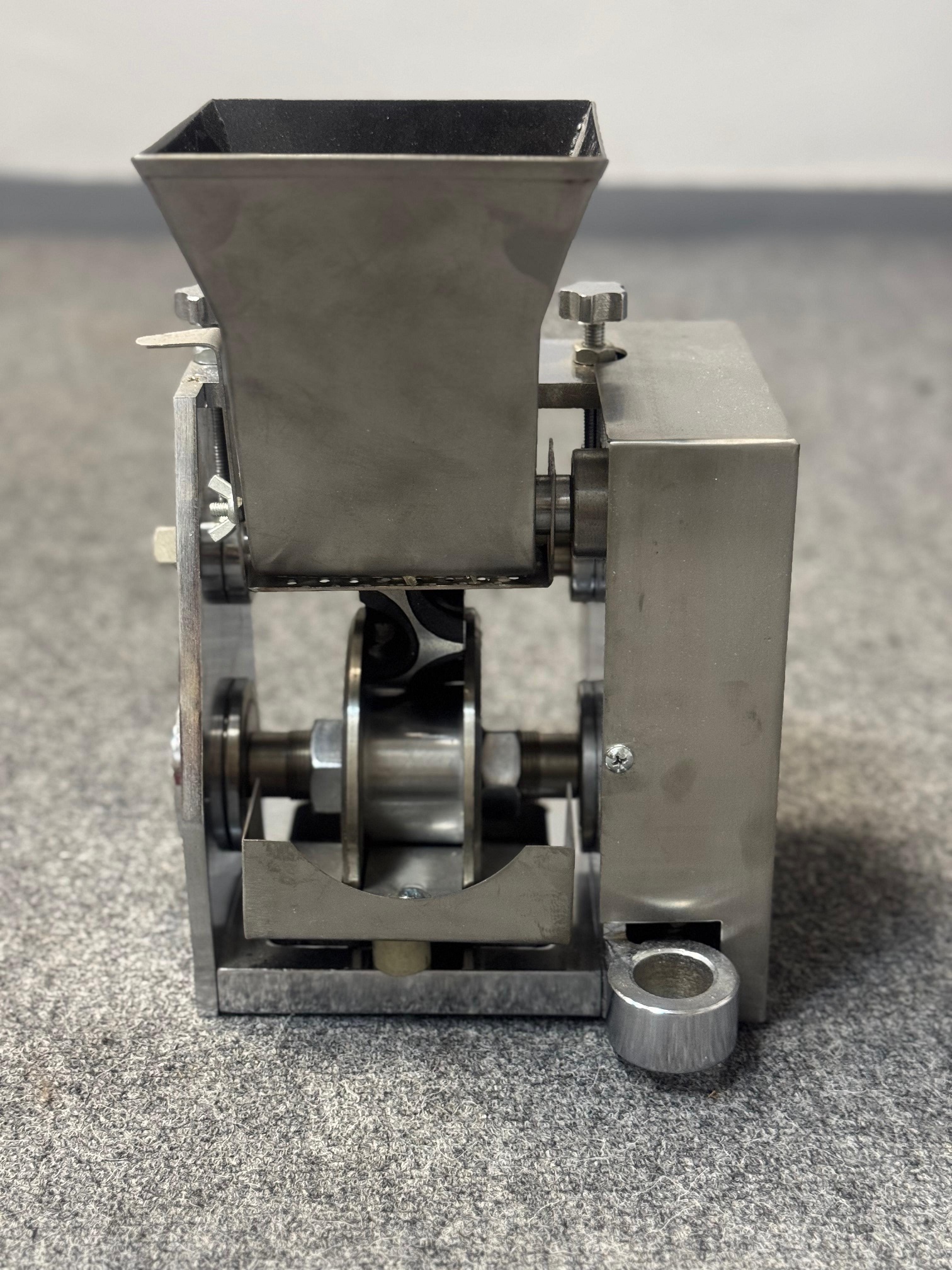 Не только корпус, но и внутренние детали формующей головки изготовлены из нержавеющего углеродистого железа (стали), что обеспечивает ее долговечность и исключает коррозию. Несложная конструкция модели позволяет быстро разобрать ее для очистки и мытья.