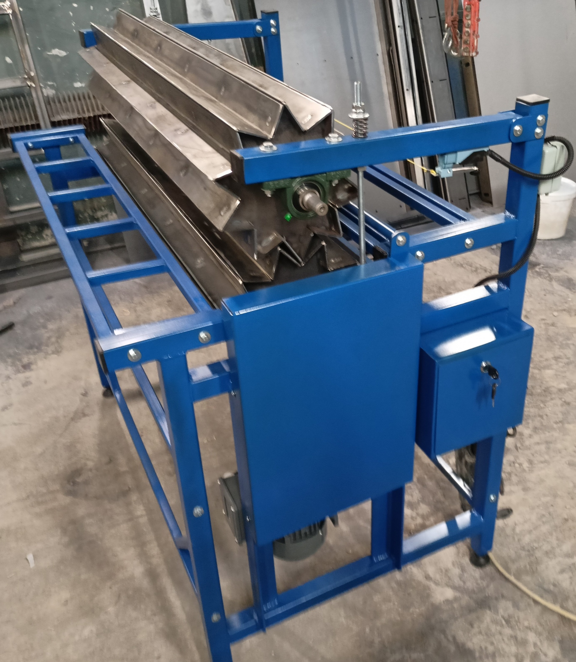 Станок предназначен для гофрирования металлической сетки, применяемой при изготовлении промышленных воздушных фильтров. Исполнение станка позволяет гофрировать сетку с прочно наклеенным, сминаемым фильтровальным материалом.
