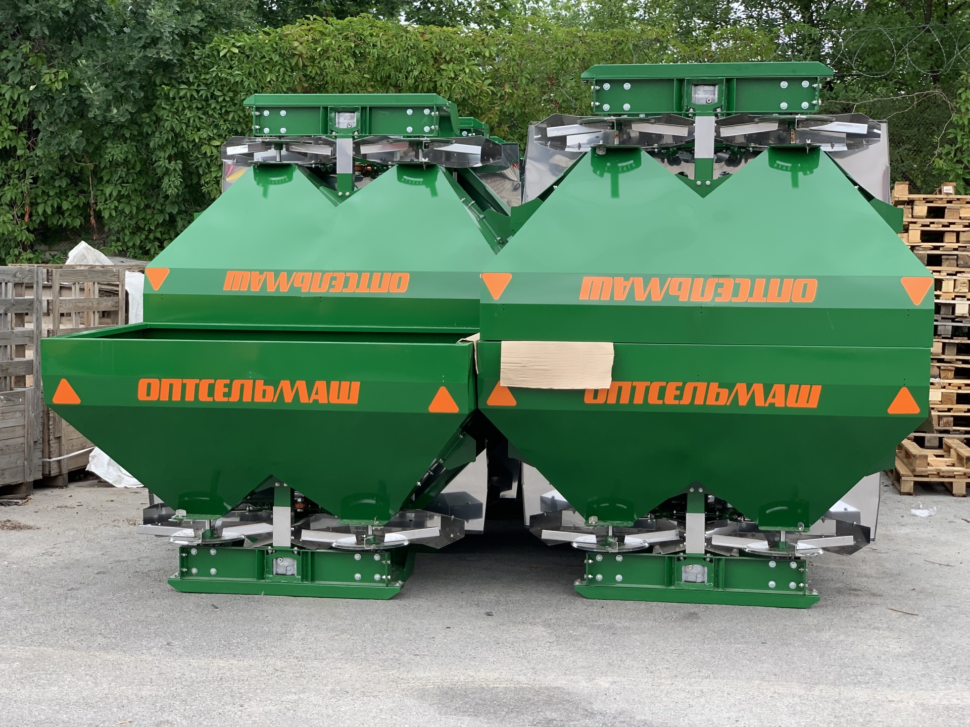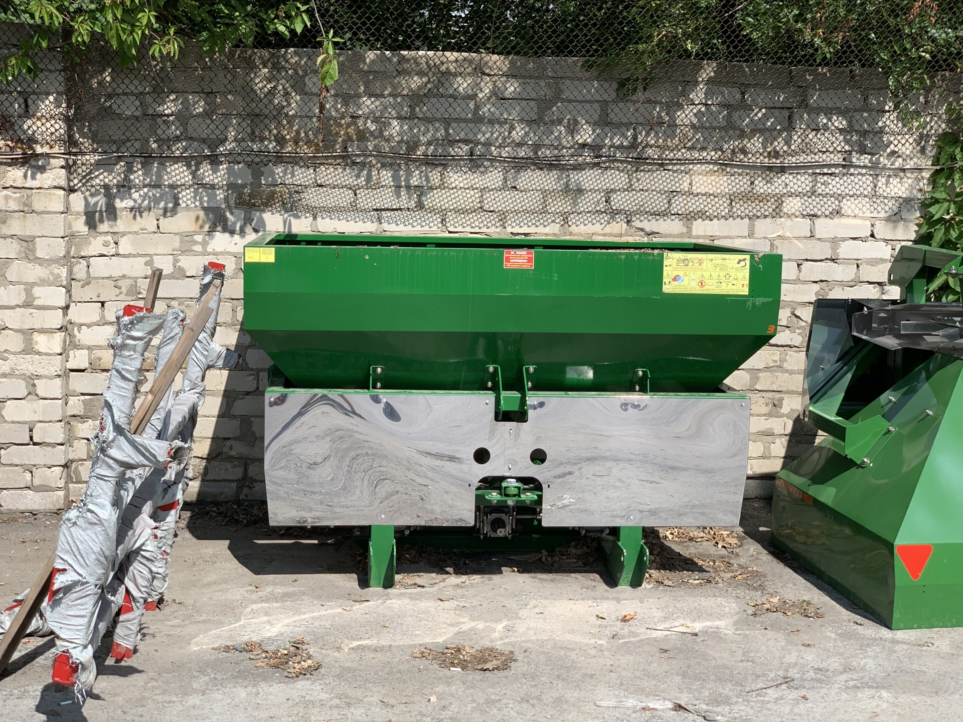 Разбрасыватель снабжен двумя высевающими дисками. Емкость разбрасывателя изготовлена из металла, покрытого порошковыми красками, стойкими к воздействию химикатов. Система управления заслонками – гидравлическая.