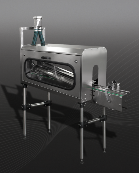 Оборудование предназначено для стерилизации крышек с внутренней стороны. Наклоняя бутылки на сторону, горячая жидкость контактирует с крышкой бутылки и горлышком, тем самым стерилизует внутренность бутылки и крышку.
