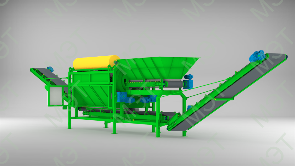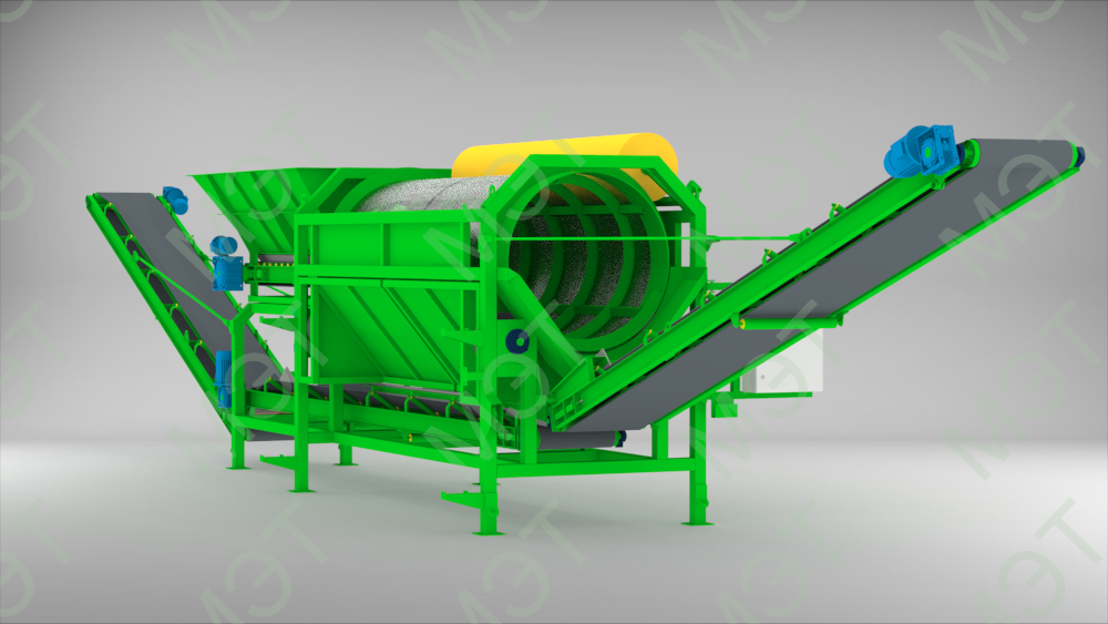 - Регулируемые обороты просеивающего барабана и скорости подачи питателя.
