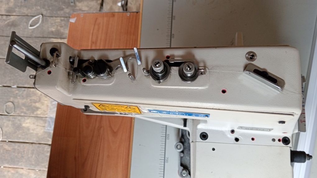 Машина БУ. Работала месяц или два. В отличном состоянии. Промстол как новый. Пришивали этикетку, потом изменилась технология и этикетку стали прикреплять другим способом.