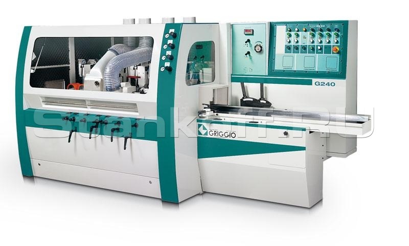 6-ти шпиндельный строгально-калевочный станок GRIGGIO G 240/6 – усовершенствованный станок, тяжелой группы, для производства за один проход погонажных изделий, столярно-строительных изделий и различной деревообрабатывающей продукции для строительства домов.