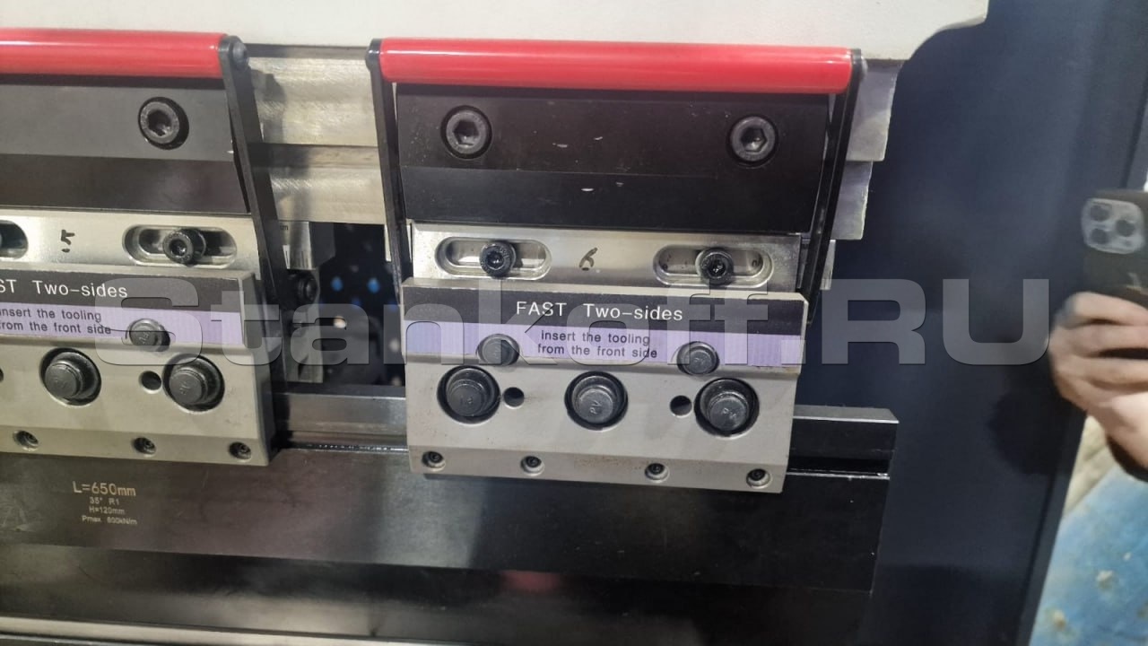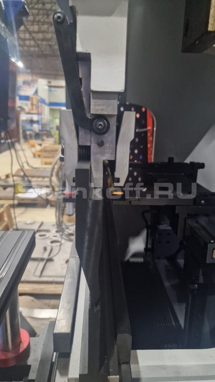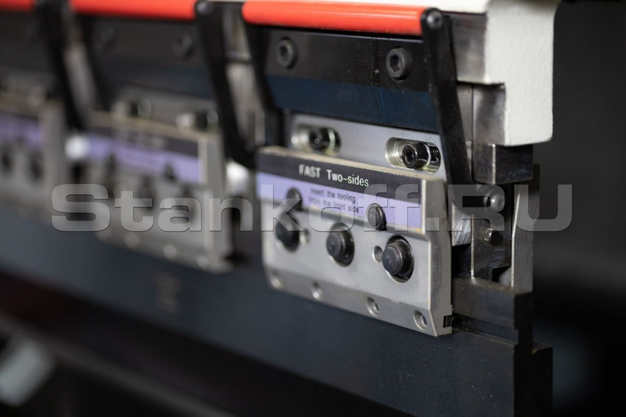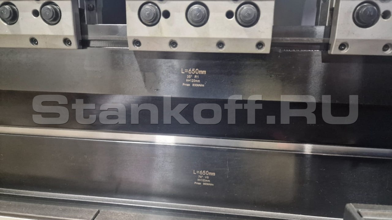 Применены линейные направляющие и масляный насос — это гарантирует плавность, долговечность и надёжность всех движений. Рабочий стол с компенсацией отклонения типа Skewback, управляемой системой DNC, обеспечивает равномерную гибку по всей длине заготовки. Задний упор с серводвигателем и шариковым винтом позволяет быстро и точно позиционировать материал. В стандартную комплектацию входит комплект инструментов для выполнения основных операций гибки.