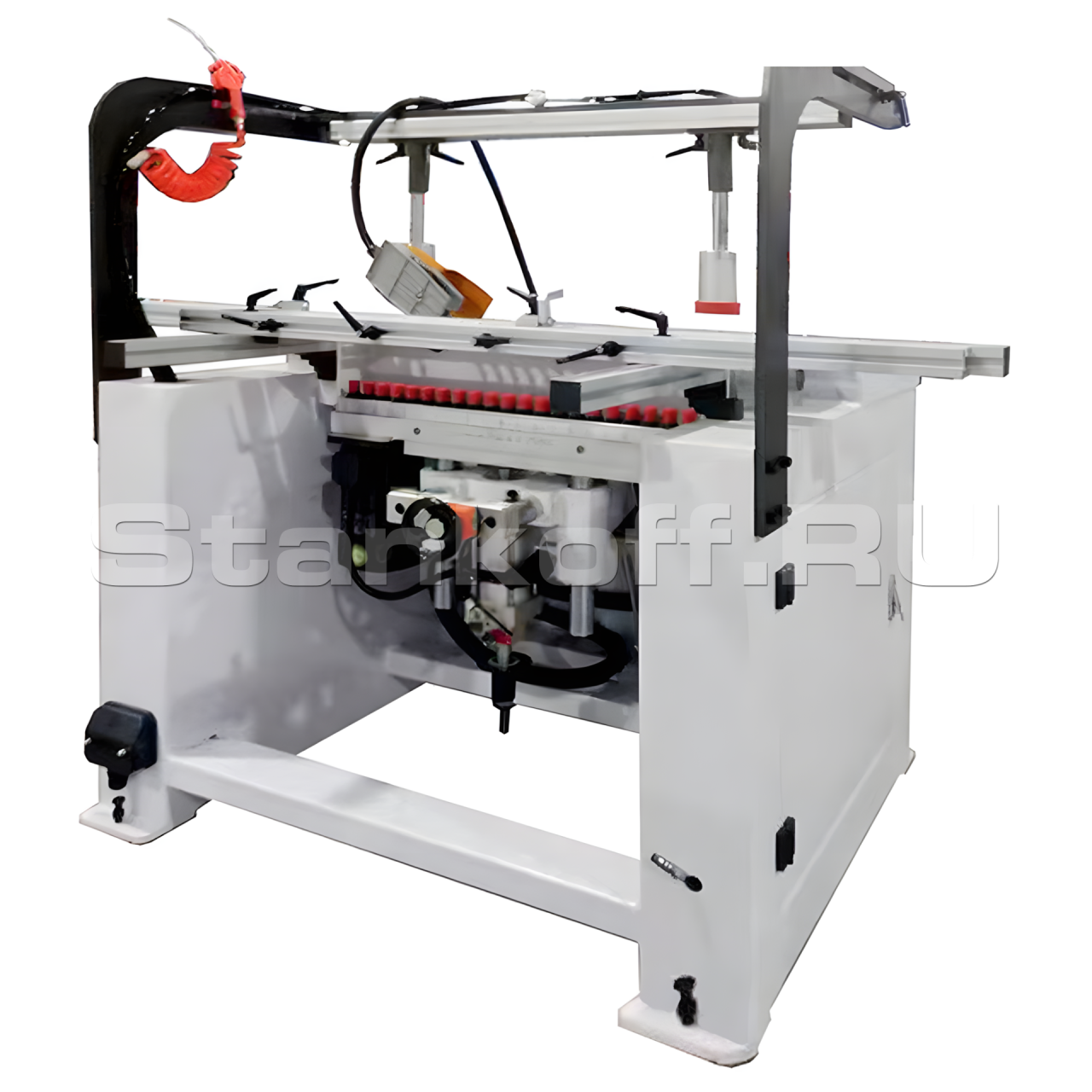 - Два верхних пневмоцилиндра для надёжной фиксации заготовок при выполнении сверления.